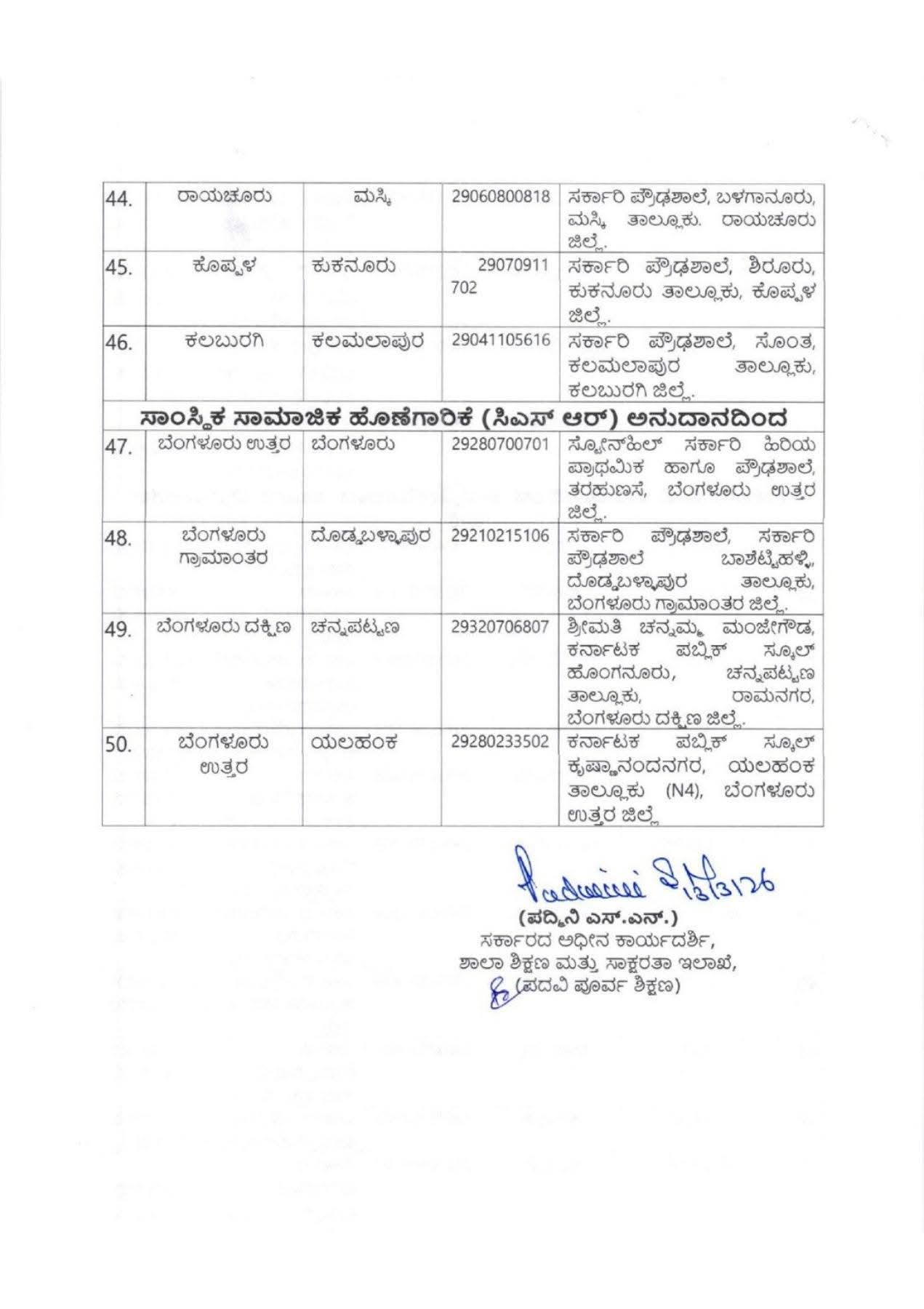 ಅನುದಾನ ಮತ್ತು ಸೌಲಭ್ಯ: * KKRDB ಅಥವಾ CSR ಯೋಜನೆಗಳ ಅಡಿಯಲ್ಲಿ ಮುಂದಿನ 3 ವರ್ಷಗಳ ಕಾಲ ವೇತನ ಮತ್ತು ಮೂಲಸೌಕರ್ಯಕ್ಕೆ ಅನುದಾನ ದೊರೆಯುವ ಶಾಲೆಗಳಿಗೆ ಆದ್ಯತೆ ನೀಡಲಾಗಿದೆ.