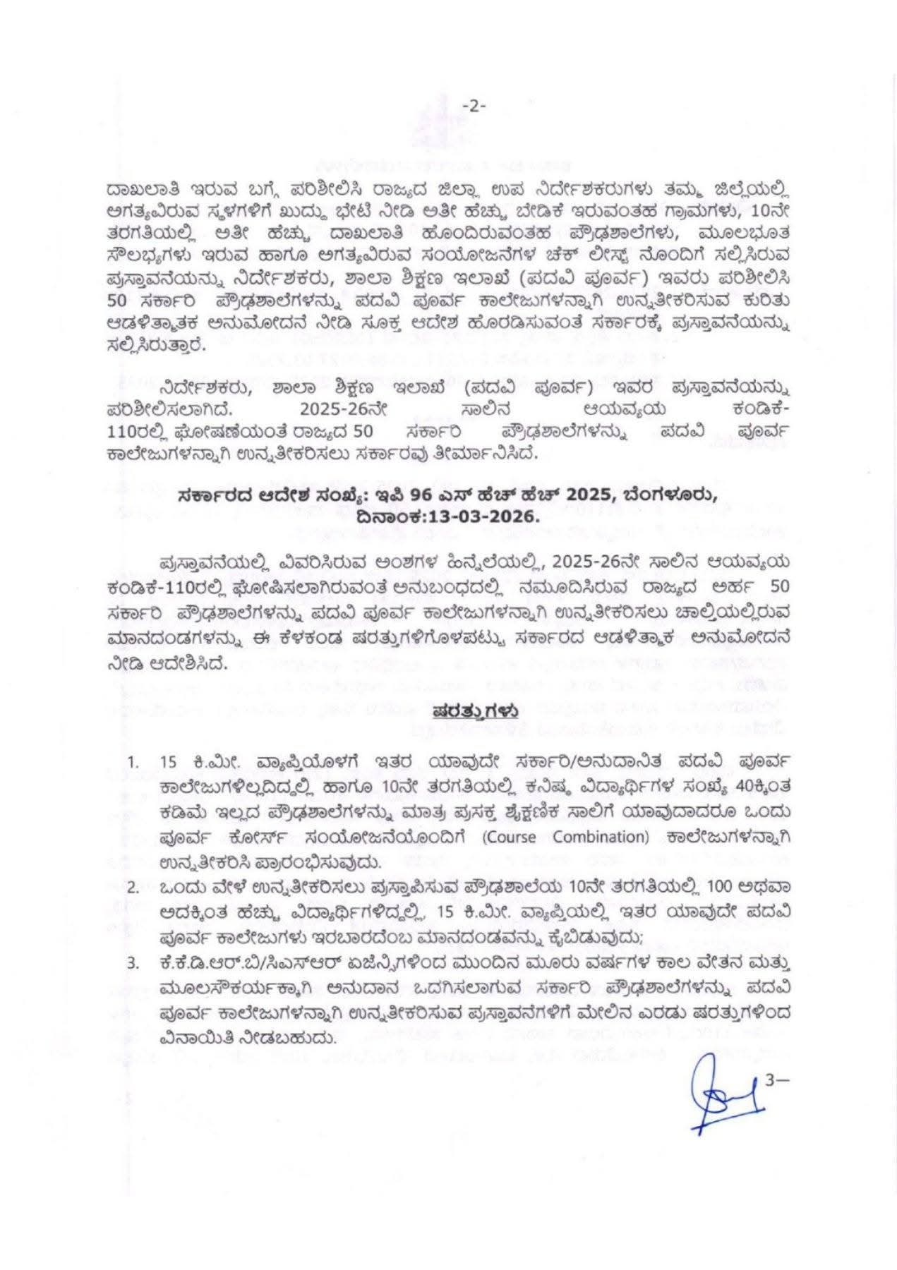 2025-26ರ ಬಜೆಟ್ನಲ್ಲಿ ಘೋಷಿಸಿದಂತೆ, ರಾಜ್ಯದ ಗ್ರಾಮೀಣ ಹಾಗೂ ಹಿಂದುಳಿದ ಭಾಗಗಳ ವಿದ್ಯಾರ್ಥಿಗಳಿಗೆ ಹೆಚ್ಚಿನ ಶಿಕ್ಷಣ ಸೌಲಭ್ಯ ಒದಗಿಸುವ ದೃಷ್ಟಿಯಿಂದ ಈ ಕ್ರಮ ಕೈಗೊಳ್ಳಲಾಗಿದೆ. ಈ ಆದೇಶಕ್ಕೆ ಆರ್ಥಿಕ ಇಲಾಖೆಯು ಫೆಬ್ರವರಿ 05, 2026 ರಂದು ಸಹಮತಿ ನೀಡಿದ್ದು, ಮಾರ್ಚ್ 13, 2026 ರಂದು ಅಧಿಕೃತವಾಗಿ ಆದೇಶ (ಸಂಖ್ಯೆ: ಇಪಿ 96 ಎಸ್ ಹೆಚ್ ಹೆಚ್ 2025) ಹೊರಬಿದ್ದಿದೆ.