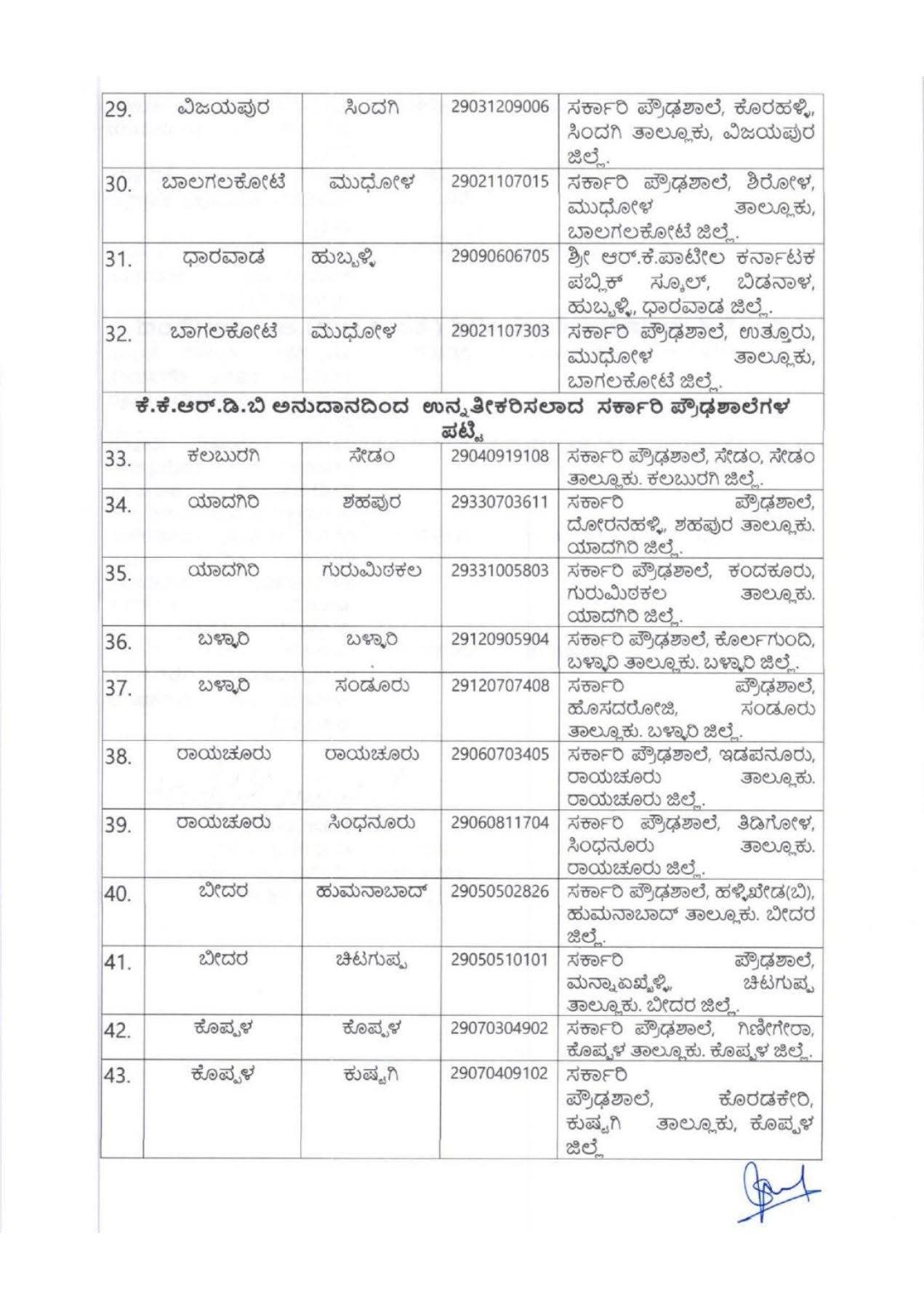 ಅನುದಾನ ಮತ್ತು ಸೌಲಭ್ಯ: * KKRDB ಅಥವಾ CSR ಯೋಜನೆಗಳ ಅಡಿಯಲ್ಲಿ ಮುಂದಿನ 3 ವರ್ಷಗಳ ಕಾಲ ವೇತನ ಮತ್ತು ಮೂಲಸೌಕರ್ಯಕ್ಕೆ ಅನುದಾನ ದೊರೆಯುವ ಶಾಲೆಗಳಿಗೆ ಆದ್ಯತೆ ನೀಡಲಾಗಿದೆ.