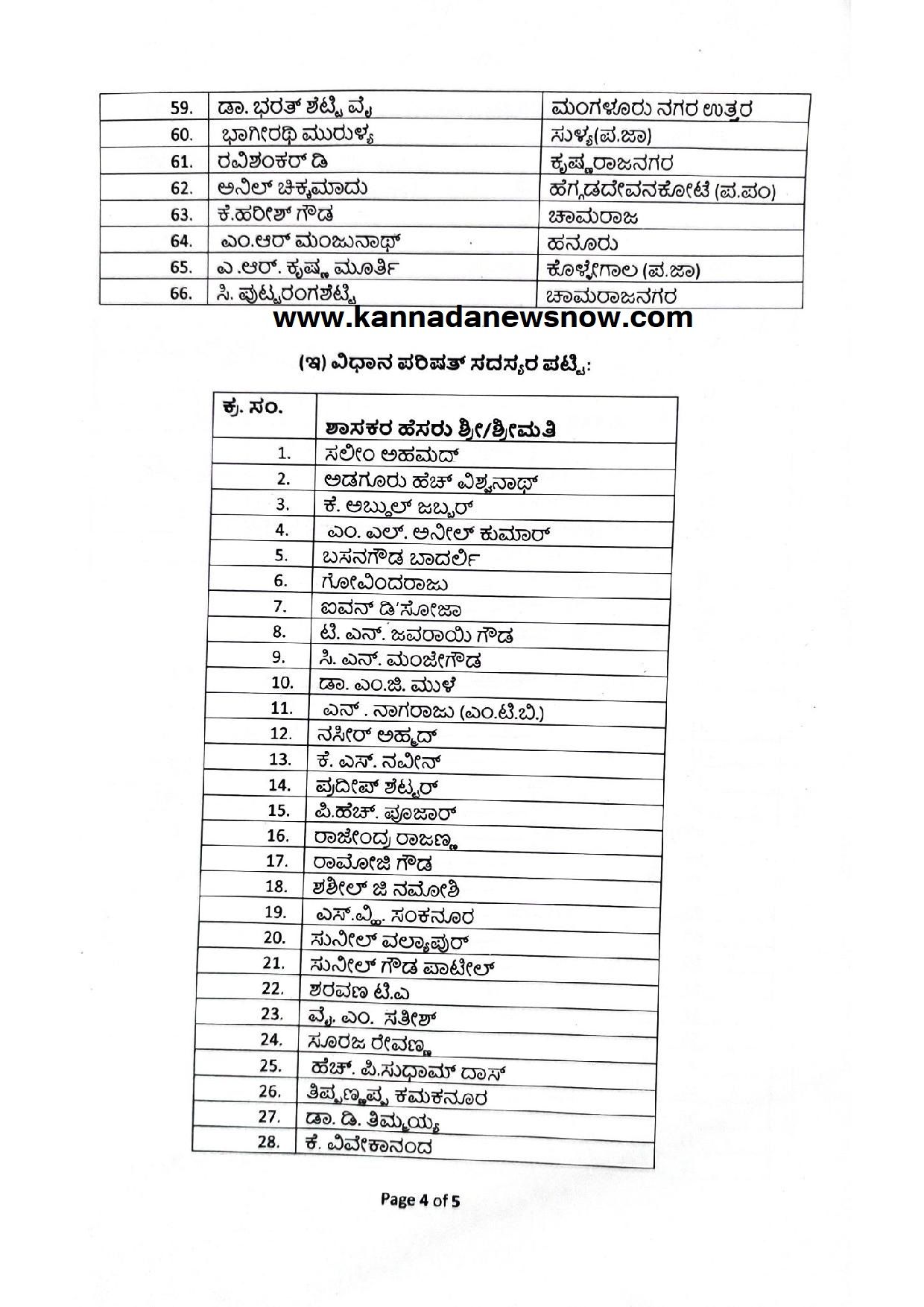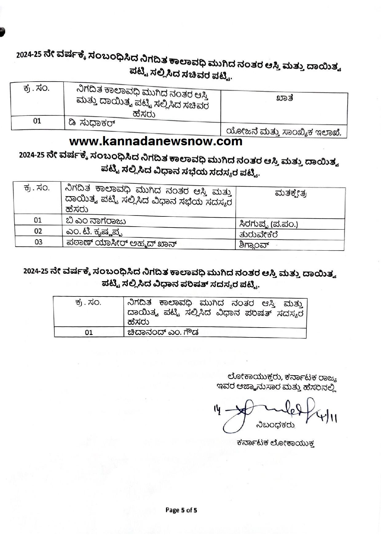 ಅಧಿನಿಯಮದ ಕಲಂ 22ರಲ್ಲಿ ಉಲ್ಲೇಖಿಸಿರುವ ಸಾರ್ವಜನಿಕ ನೌಕರ ಎಂಬ ವ್ಯಾಖ್ಯಾನದ ಅಡಿಯಲ್ಲಿ ವಿಧಾನ ಸಭಾ ಮತ್ತು ವಿಧಾನ ಪರಿಷತ್ ಎಲ್ಲಾ ಸದಸ್ಯರೂ ಸೇರಿರುತ್ತಾರೆ. ಸಕ್ಷಮ ಪ್ರಾಧಿಕಾರಕ್ಕೆ ಸಲ್ಲಿಸಿರುವ ದಿನಾಂಕ 28/08/2025 ರ ವರದಿಯ ಪ್ರತಿ ಈ ಕೆಳಕಂಡ ಸಾರ್ವಜನಿಕ ನೌಕರರಿಗೆ ಜಾರಿಯಾಗಿದ್ದಾಗ್ಯೂ, ಸಕ್ಷಮ ಪ್ರಾಧಿಕಾರಕ್ಕೆ ವರದಿಯನ್ನು ಸಲ್ಲಿಸಿದ ಎರಡು ತಿಂಗಳುಗಳೊಳಗಾಗಿ ಸದರಿ ಸಾರ್ವಜನಿಕ ನೌಕರರು 2024-25ನೇ ಸಾಲಿನ ತಮ್ಮ ಆಸ್ತಿ ಮತ್ತು ದಾಯಿತ್ವಗಳ ವಿವರಣಾ ಪಟ್ಟಿಯನ್ನು ಸಲ್ಲಿಸಲು ವಿಫಲರಾಗಿರುವುದರಿಂದ ಅವರ ಹೆಸರುಗಳನ್ನು ಅಧಿನಿಯಮದ ಕಲಂ 22ರ ಉಪ ಕಲಂ (2) ರಂತೆ ಈ ಮೂಲಕ ಮೂರು ವೃತ್ತಪತ್ರಿಕೆಗಳಲ್ಲಿ ಪುಕಟಿಸಲಾಗಿದೆ ಎಂದಿದೆ.