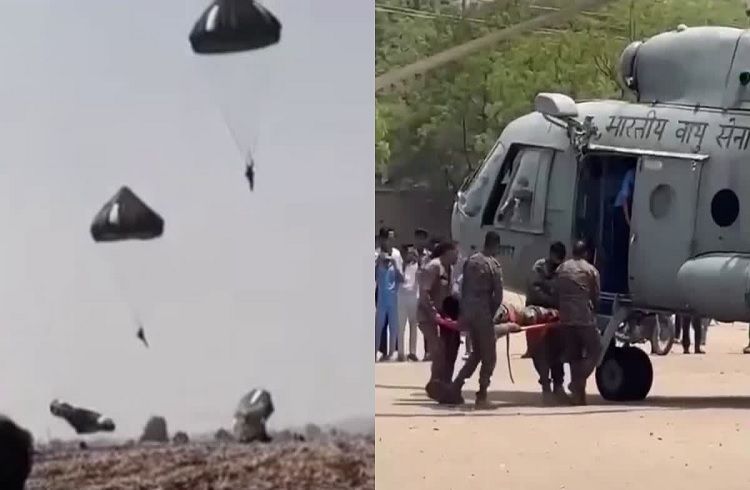 ಶುಕ್ರವಾರ ಬೆಳಿಗ್ಗೆ ಭಾರತೀಯ ವಾಯುಸೇನೆಯ ವತಿಯಿಂದ ಆಯೋಜಿಸಲಾಗಿದ್ದ ಈ ತರಬೇತಿ ಶಿಬಿರದಲ್ಲಿ ಒಟ್ಟು 417 ಸೈನಿಕರು ಭಾಗವಹಿಸಿದ್ದರು. ವಿಮಾನದಿಂದ ಪ್ಯಾರಾಚೂಟ್ ಮೂಲಕ ಜಿಗಿಯುವ ಅಭ್ಯಾಸದ ವೇಳೆ, ಲ್ಯಾಂಡಿಂಗ್ ಹಂತದಲ್ಲಿ ತಾಂತ್ರಿಕ ಸಮಸ್ಯೆ ಎದುರಾಗಿ ಇಬ್ಬರು ಯೋಧರು ನಿಯಂತ್ರಣ ತಪ್ಪಿ ನೇರವಾಗಿ ಹೊಲವೊಂದಕ್ಕೆ ಬಿದ್ದಿದ್ದಾರೆ.