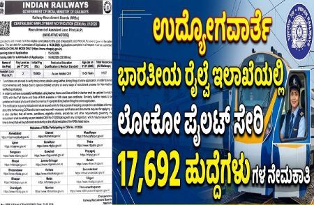 ಉದ್ಯೋಗವಾರ್ತೆ : ಭಾರತೀಯ ರೈಲ್ವೆ ಇಲಾಖೆಯಲ್ಲಿ `ಲೋಕೋ ಪೈಲಟ್’ ಸೇರಿ 17,692 ಹುದ್ದೆಗಳ ನೇಮಕಾತಿ