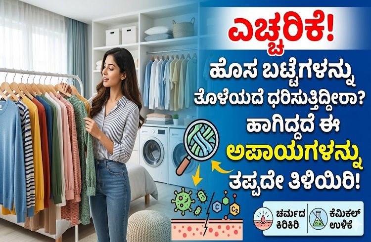 ಮಾರುಕಟ್ಟೆಯಿಂದ ಹೊಸ ಬಟ್ಟೆಗಳನ್ನು ಖರೀದಿಸಿದ ತಕ್ಷಣ ಅದನ್ನು ಧರಿಸುವುದು ಹೆಚ್ಚಿನವರಿಗೆ ರೂಢಿ. ಹೊಸ ಬಟ್ಟೆಯ ಹೊಳಪು ಮತ್ತು ಹೊಸತನದ ಉತ್ಸಾಹದಲ್ಲಿ ನಾವು ಒಂದು ಮುಖ್ಯವಾದ ಕೆಲಸವನ್ನು ಮರೆಯುತ್ತೇವೆ, ಅದೇ ‘ಬಟ್ಟೆಯನ್ನು ತೊಳೆಯುವುದು’. ಹೊಸ ಬಟ್ಟೆಗಳನ್ನು ಖರೀದಿಸಿದ ನಂತರ ತೊಳೆಯದೆ ಧರಿಸುವುದು ನಿಮ್ಮ ಆರೋಗ್ಯಕ್ಕೆ, ವಿಶೇಷವಾಗಿ ನಿಮ್ಮ ಚರ್ಮಕ್ಕೆ ಮಾರಕವಾಗಬಹುದು ಎಂದು ತಜ್ಞರು ಎಚ್ಚರಿಸಿದ್ದಾರೆ.