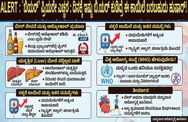 ಆರೋಗ್ಯದ ದೃಷ್ಟಿಯಿಂದ ಬೀರ್ ಅಥವಾ ಯಾವುದೇ ರೀತಿಯ ಮದ್ಯಪಾನವು ಹಾನಿಕಾರಕವಾಗಿದೆ. ಅಲ್ಪ ಪ್ರಮಾಣದ ಸೇವನೆಯೂ ದೀರ್ಘಕಾಲದ ಆರೋಗ್ಯ ಸಮಸ್ಯೆಗಳಿಗೆ ಕಾರಣವಾಗಬಹುದು ಎಂದು ತಜ್ಞರು ಎಚ್ಚರಿಸಿದ್ದಾರೆ.