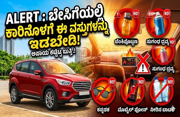 ಬೇಸಿಗೆಯ ಬಿಸಿಲು ಹೆಚ್ಚಾದಂತೆ ಕಾರಿನ ಕ್ಯಾಬಿನ್ ಒಂದು ಒಲೆಯಂತೆ ಕಾಯುತ್ತದೆ. ಈ ಹೆಚ್ಚಿನ ತಾಪಮಾನವು ಕಾರಿನಲ್ಲಿರುವ ಕೆಲವು ದೈನಂದಿನ ವಸ್ತುಗಳನ್ನು ಸ್ಫೋಟಿಸುವಂತೆ ಮಾಡಬಹುದು ಅಥವಾ ಹಾನಿ ಉಂಟುಮಾಡಬಹುದು. ಸುರಕ್ಷತೆಯ ದೃಷ್ಟಿಯಿಂದ ಈ ಕೆಳಗಿನ ವಸ್ತುಗಳನ್ನು ಕಾರಿನಲ್ಲಿ ಬಿಡಬೇಡಿ.