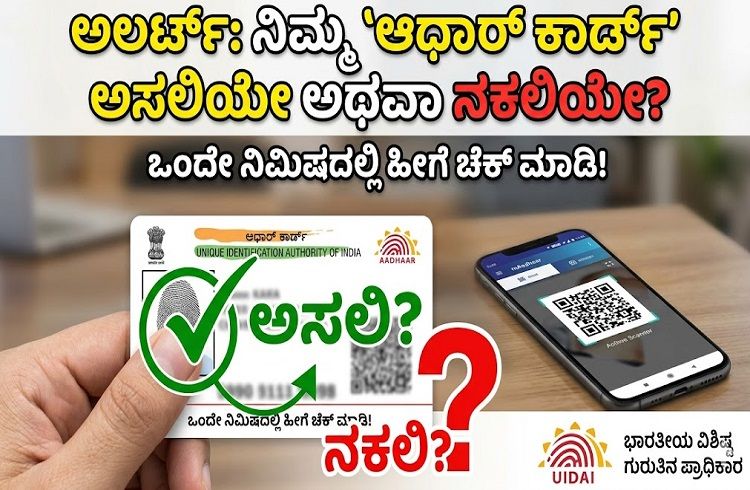 ಇಂದಿನ ಕಾಲದಲ್ಲಿ ಆಧಾರ್ ಕಾರ್ಡ್ ಅತ್ಯಗತ್ಯ ದಾಖಲೆಯಾಗಿದೆ. ಬ್ಯಾಂಕ್ ಖಾತೆ ತೆರೆಯುವುದರಿಂದ ಹಿಡಿದು ಸಿಮ್ ಕಾರ್ಡ್ ಪಡೆಯುವವರೆಗೆ ಪ್ರತಿಯೊಂದು ಕೆಲಸಕ್ಕೂ ಆಧಾರ್ ಕಡ್ಡಾಯ. ಆದರೆ, ಮಾರುಕಟ್ಟೆಯಲ್ಲಿ ನಕಲಿ ಆಧಾರ್ ಕಾರ್ಡ್ಗಳ ಹಾವಳಿ ಹೆಚ್ಚಾಗುತ್ತಿದ್ದು, ನಿಮ್ಮಲ್ಲಿರುವ ಕಾರ್ಡ್ ಅಸಲಿಯೇ ಅಥವಾ ನಕಲಿಯೇ ಎಂಬ ಸಂಶಯ ನಿಮಗಿದ್ದರೆ ಅದನ್ನು ಪರಿಶೀಲಿಸಲು ಭಾರತೀಯ ವಿಶಿಷ್ಟ ಗುರುತಿನ ಪ್ರಾಧಿಕಾರ (UIDAI) ಈಗ ಸುಲಭ ವಿಧಾನವನ್ನು ತಿಳಿಸಿಕೊಟ್ಟಿದೆ.