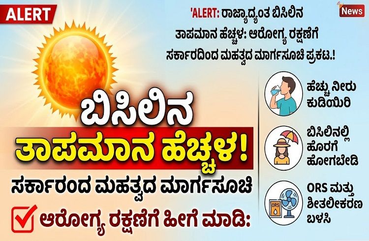 ಬೆಂಗಳೂರು: ರಾಜ್ಯದಲ್ಲಿ ಬಿಸಿಲಿನ ತಾಪ ದಿನದಿಂದ ದಿನಕ್ಕೆ ಏರಿಕೆಯಾಗುತ್ತಿದ್ದು, ಸಾರ್ವಜನಿಕರ ಆರೋಗ್ಯದ ದೃಷ್ಟಿಯಿಂದ ಸರ್ಕಾರವು ಮುನ್ನೆಚ್ಚರಿಕಾ ಕ್ರಮಗಳನ್ನು ಕೈಗೊಳ್ಳಲು ಮಹತ್ವದ ಮಾರ್ಗಸೂಚಿಗಳನ್ನು ಬಿಡುಗಡೆ ಮಾಡಿದೆ. ಈ ಬಾರಿ ‘ಎಲ್ ನಿನೊ’ ಪ್ರಭಾವದಿಂದಾಗಿ ವಾಡಿಕೆಗಿಂತ ಕಡಿಮೆ ಮಳೆಯಾಗುವ ಸಾಧ್ಯತೆ ಇದ್ದು, ಬಿಸಿಲಿನ ಝಳ ಮತ್ತಷ್ಟು ತೀವ್ರಗೊಳ್ಳಲಿದೆ ಎಂದು ಭಾರತೀಯ ಹವಾಮಾನ ಇಲಾಖೆ (IMD) ಎಚ್ಚರಿಸಿದೆ.