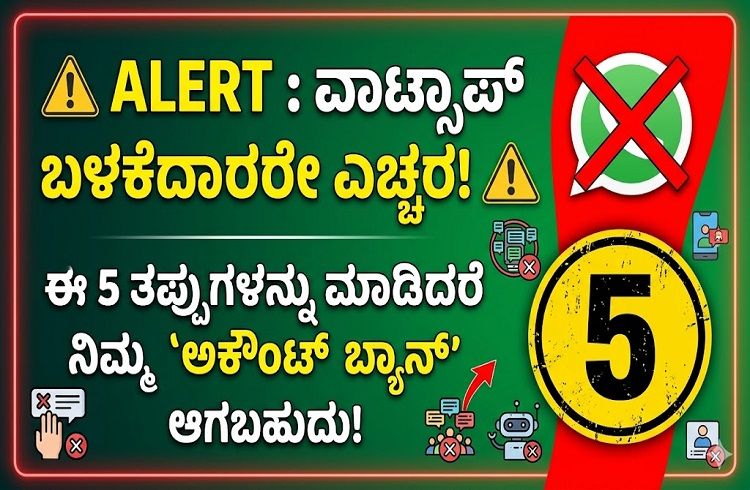ಇತ್ತೀಚಿನ ದಿನಗಳಲ್ಲಿ ವಾಟ್ಸಾಪ್ ತನ್ನ ನಿಯಮಗಳನ್ನು ಅತ್ಯಂತ ಕಟ್ಟುನಿಟ್ಟಾಗಿಸಿದೆ. ಬಳಕೆದಾರರ ಸುರಕ್ಷತೆಯ ದೃಷ್ಟಿಯಿಂದ ಕಂಪನಿಯು ಲಕ್ಷಾಂತರ ಖಾತೆಗಳನ್ನು ಪ್ರತಿ ತಿಂಗಳು ನಿಷೇಧಿಸುತ್ತಿದೆ. ನೀವು ತಿಳಿಯದೆಯೇ ಮಾಡುವ ಕೆಲವು ಸಣ್ಣ ತಪ್ಪುಗಳು ನಿಮ್ಮ ಪ್ರೀತಿಯ ವಾಟ್ಸಾಪ್ ಖಾತೆಯನ್ನು ಕಳೆದುಕೊಳ್ಳುವಂತೆ ಮಾಡಬಹುದು. ಹಾಗಿದ್ದರೆ, ನೀವು ತಪ್ಪಿಸಬೇಕಾದ ಆ ಪ್ರಮುಖ ಅಂಶಗಳು ಇಲ್ಲಿವೆ: