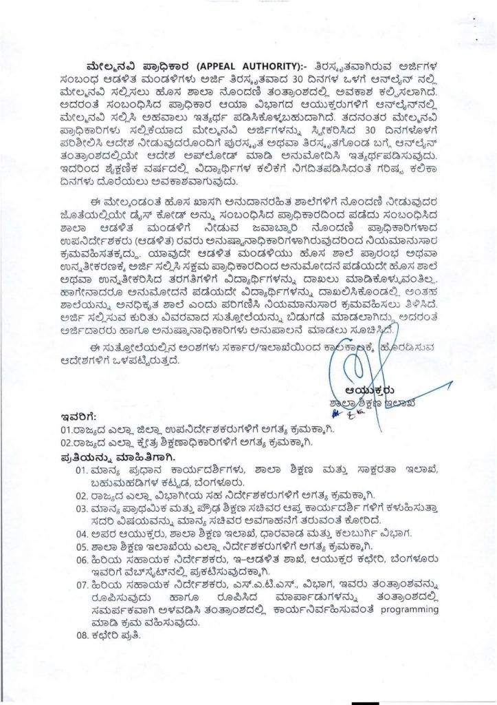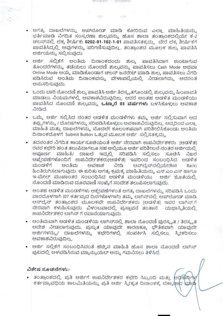 ಹೆಚ್ಚಿನ ಮಾಹಿತಿಗಾಗಿ ಸಂಬಂಧಪಟ್ಟ ಕ್ಷೇತ್ರ ಶಿಕ್ಷಣಾಧಿಕಾರಿಗಳ (BEO) ಅಥವಾ ಉಪನಿರ್ದೇಶಕರ (DDPI) ಕಚೇರಿಯನ್ನು ಸಂಪರ್ಕಿಸಲು ಸೂಚಿಸಲಾಗಿದೆ.