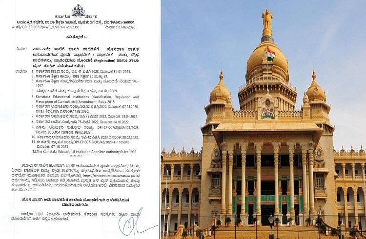 ಬೆಂಗಳೂರು : 2026-27ನೇ ಸಾಲಿಗೆ ಖಾಸಗಿ ಶಾಲೆಗಳಿಗೆ ಹೊಸದಾಗಿ ಶಾಶ್ವತ ಅನುದಾನರಹಿತ ಪೂರ್ವ ಪ್ರಾಥಮಿಕ / ಪ್ರಾಥಮಿಕ ಮತ್ತು ಪ್ರೌಢ ಶಾಲೆಗಳನ್ನು ಪ್ರಾರಂಭಿಸಲು ನೋಂದಣಿ (Registration) ಹಾಗೂ ಶಾಲಾ ಡೈಸ್ ಕೋಡ್ ಪಡೆಯುವ ಕುರಿತು ರಾಜ್ಯ ಸರ್ಕಾರ ಮಹತ್ವದ ಆದೇಶ ಹೊರಡಿಸಿದೆ.