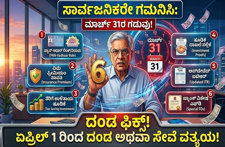 ಬೆಂಗಳೂರು: ಪ್ರಸಕ್ತ 2025-26ರ ಹಣಕಾಸು ವರ್ಷವು ಅಂತ್ಯಗೊಳ್ಳಲು ಇನ್ನು ಕೆಲವೇ ದಿನಗಳು ಬಾಕಿ ಇವೆ. ಈ ಹಿನ್ನೆಲೆಯಲ್ಲಿ ಆದಾಯ ತೆರಿಗೆ ಇಲಾಖೆ ಮತ್ತು ಬ್ಯಾಂಕುಗಳು ಸಾರ್ವಜನಿಕರಿಗೆ ಪ್ರಮುಖ ಎಚ್ಚರಿಕೆಯೊಂದನ್ನು ನೀಡಿವೆ. ನಿಮ್ಮ ಹಣಕಾಸಿನ ವ್ಯವಹಾರಗಳಲ್ಲಿ ಯಾವುದೇ ಅಡೆತಡೆ ಉಂಟಾಗಬಾರದು ಎಂದರೆ ಮಾರ್ಚ್ 31ರೊಳಗೆ ಈ ಕೆಳಗಿನ ಕೆಲಸಗಳನ್ನು ಪೂರ್ಣಗೊಳಿಸುವುದು ಕಡ್ಡಾಯವಾಗಿದೆ.
