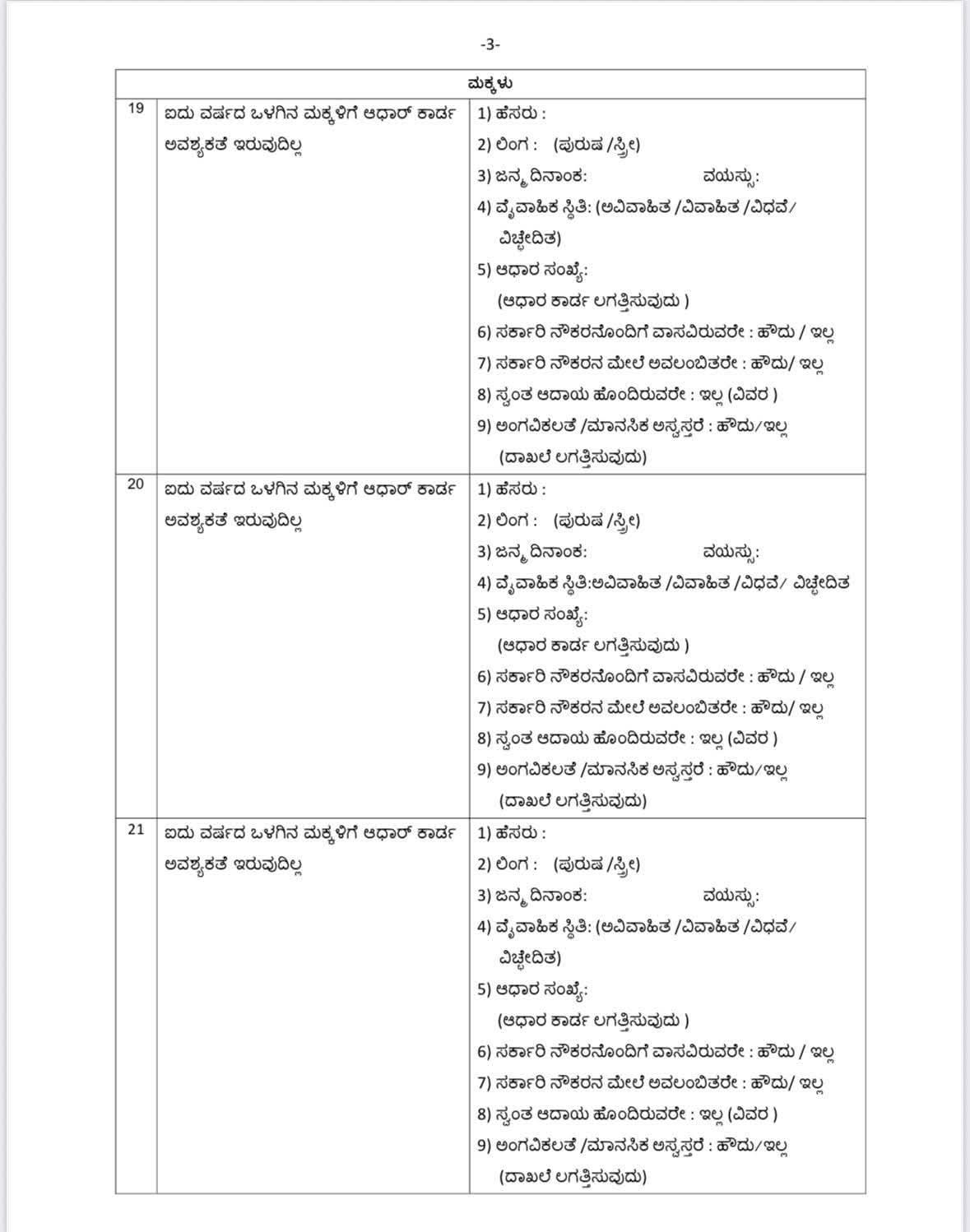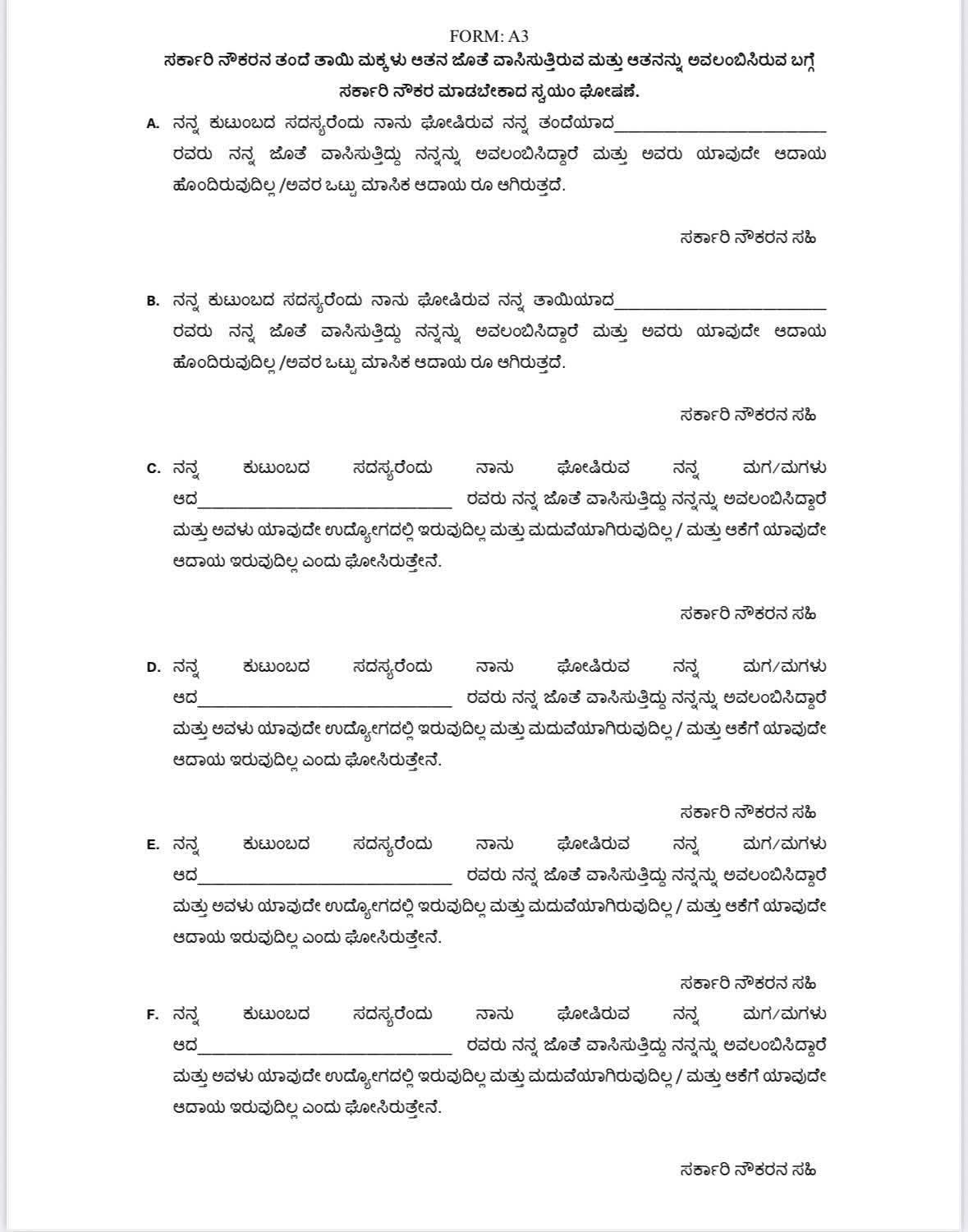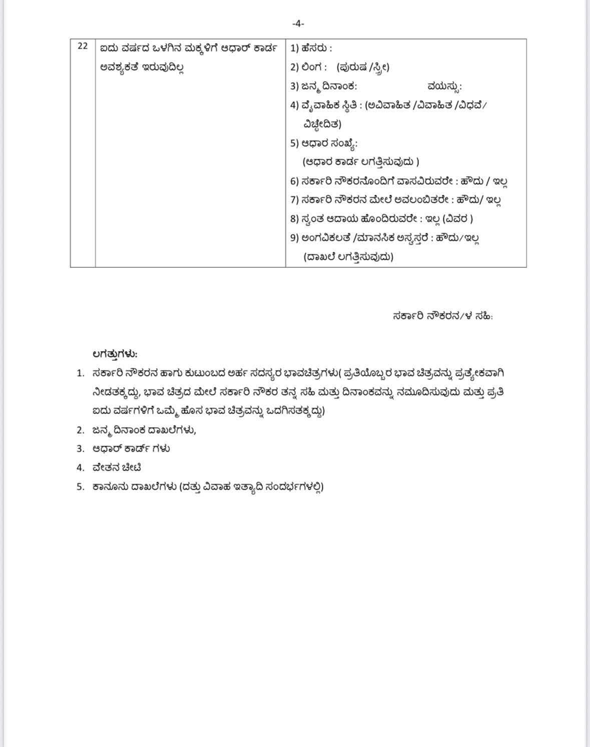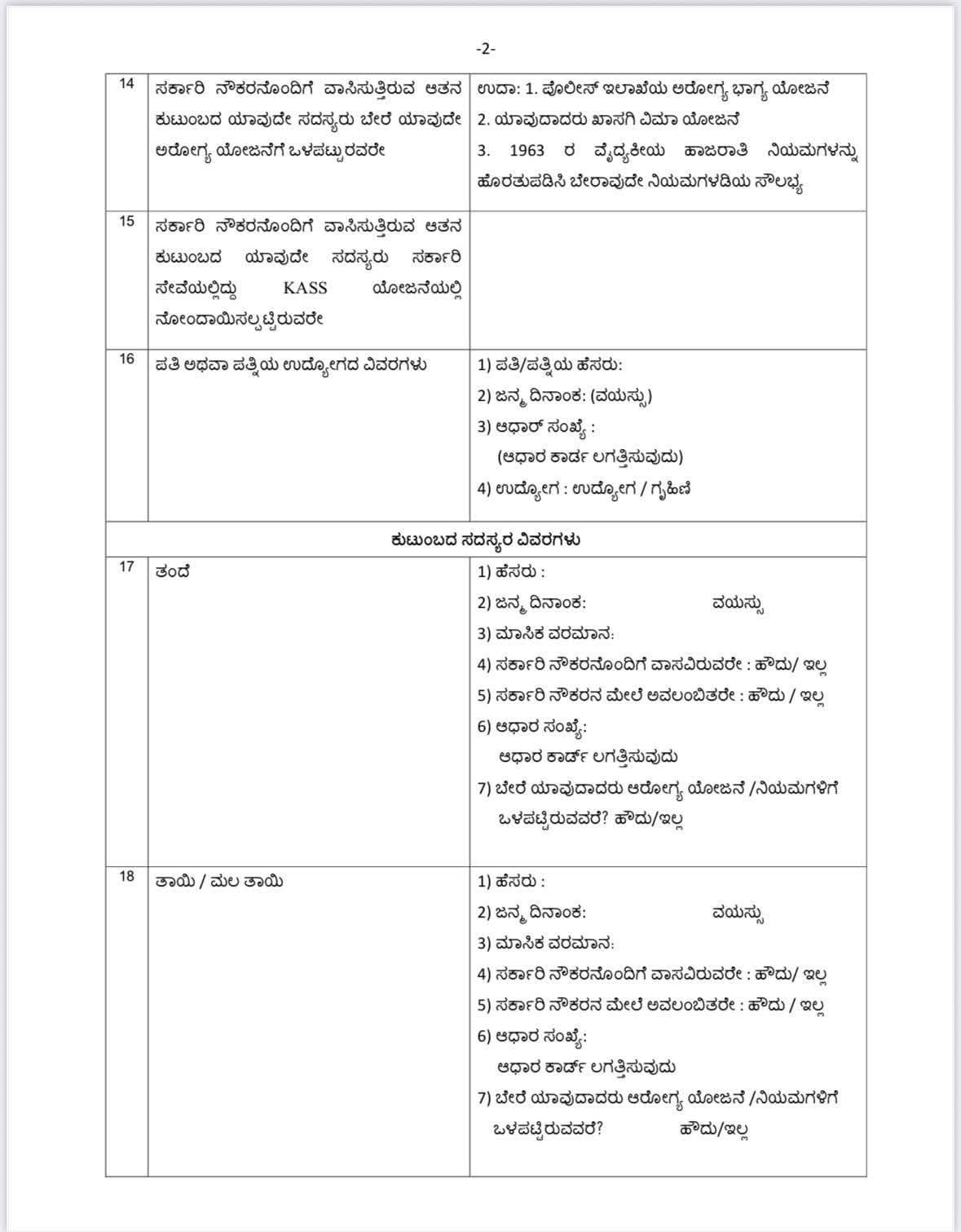 1. ಸರ್ಕಾರಿ ನೌಕರನ ಹಾಗು ಕುಟುಂಬದ ಅರ್ಹ ಸದಸ್ಯರ ಭಾವಚಿತ್ರಗಳು( ಪ್ರತಿಯೊಬ್ಬರ ಭಾವ ಚಿತ್ರವನ್ನು ಪ್ರತ್ಯೇಕವಾಗಿ ನೀಡತಕ್ಕದ್ದು, ಭಾವ ಚಿತ್ರದ ಮೇಲೆ ಸರ್ಕಾರಿ ನೌಕರ ತನ್ನ ಸಹಿ ಮತ್ತು ದಿನಾಂಕವನ್ನು ನಮೂದಿಸುವುದು ಮತ್ತು ಪ್ರತಿ ಐದು ವರ್ಷಗಳಿಗೆ ಒಮ್ಮೆ ಹೊಸ ಭಾವ ಚಿತ್ರವನ್ನು ಒದಗಿಸತಕ್ಕದ್ದು)