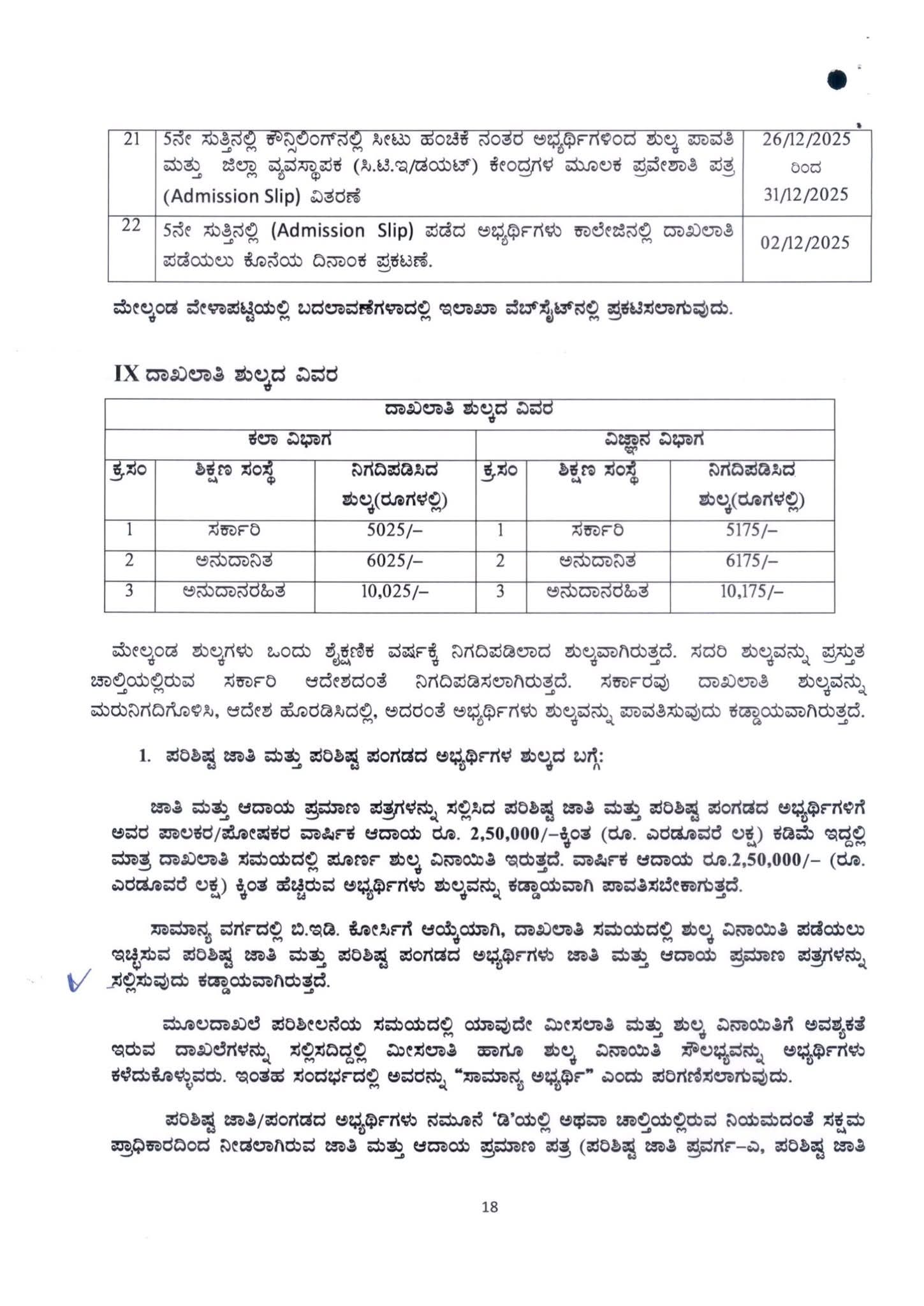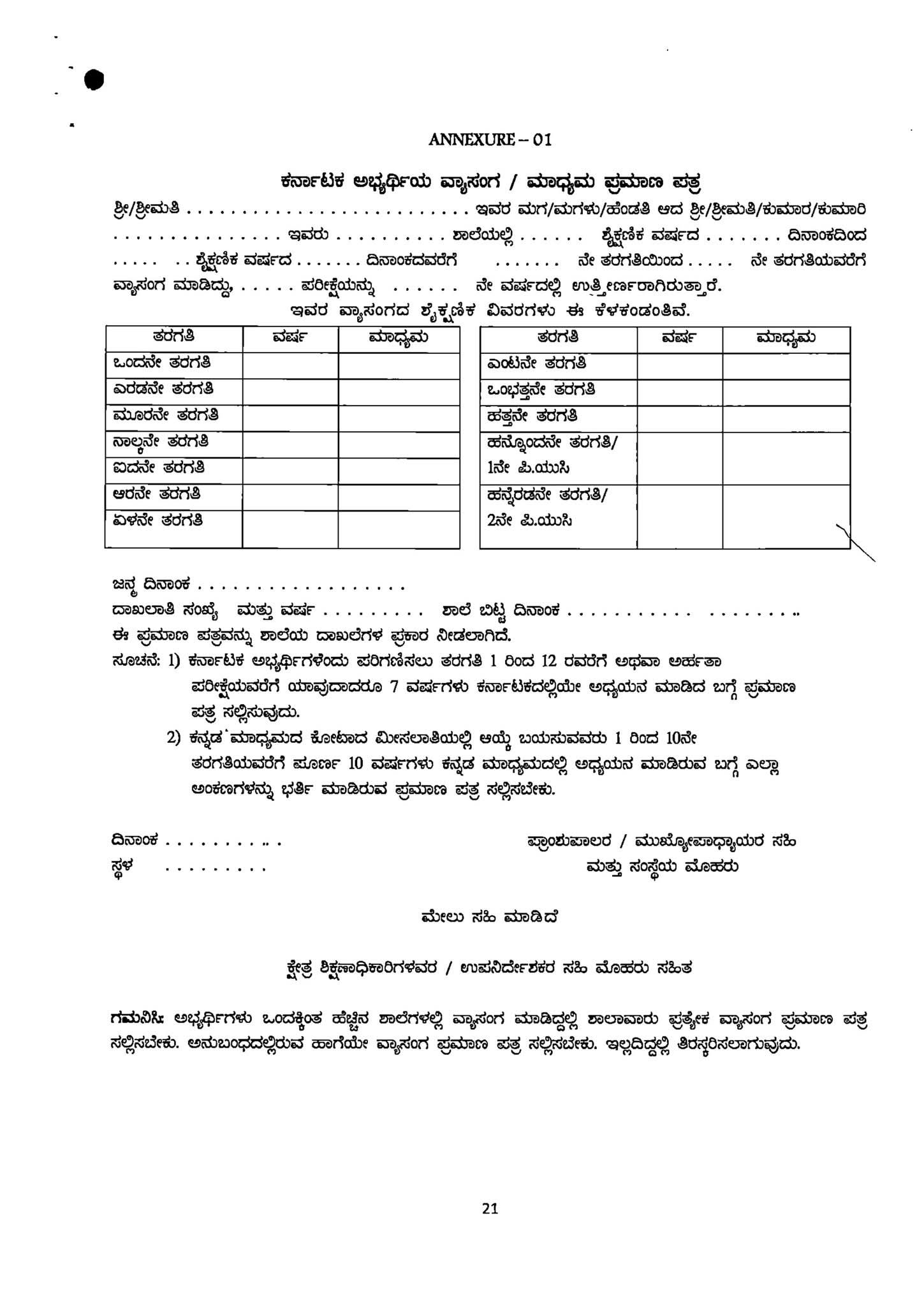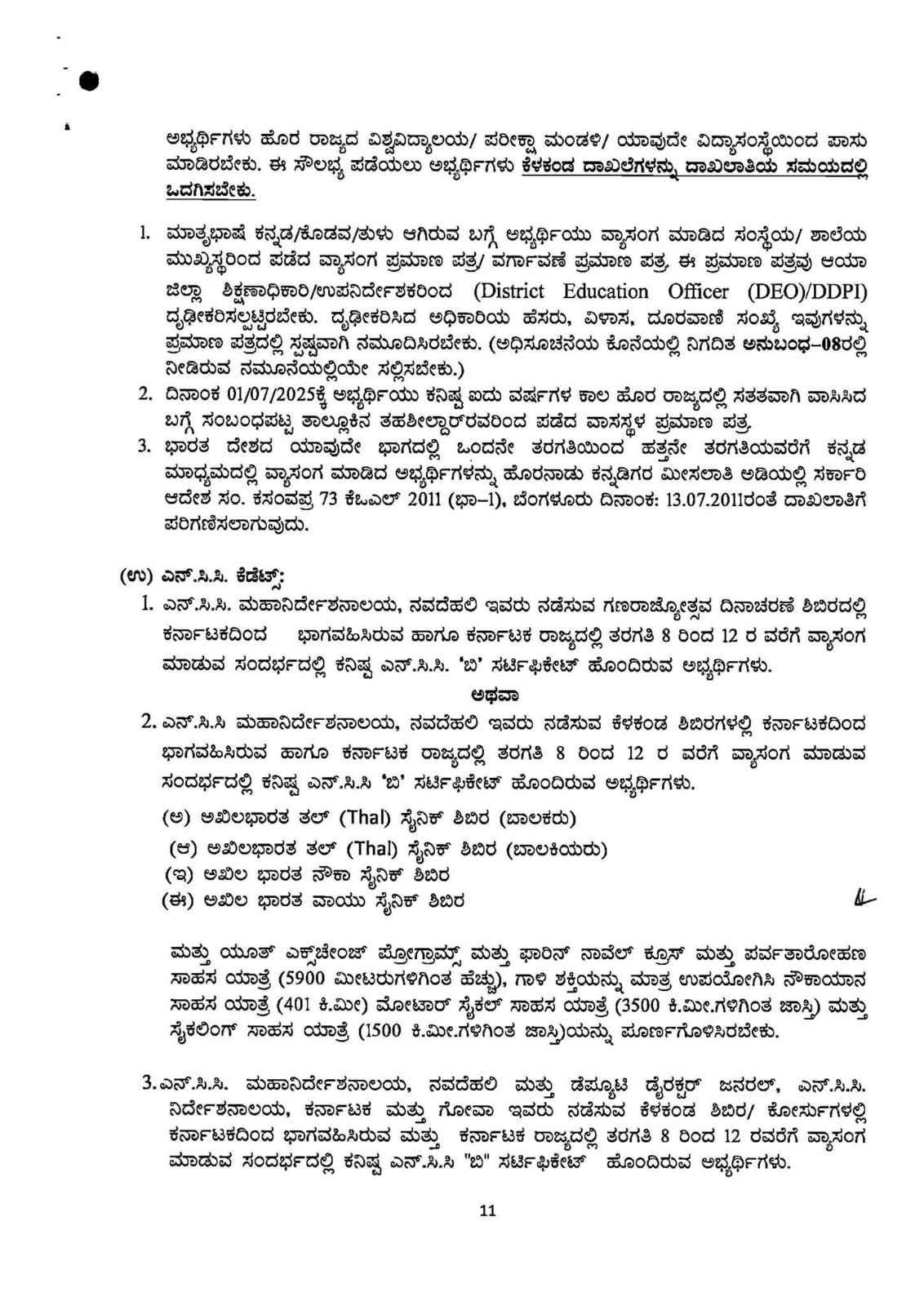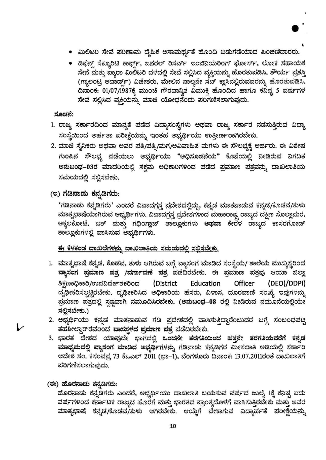 4. ಅಭ್ಯರ್ಥಿಗಳು ಕೆಳಕಂಡಂತೆ ಅಭ್ಯರ್ಥಿಗಳಿಗೆ ಅನ್ವಯಿಸುವ ಮೂಲ ದಾಖಲೆಗಳನ್ವಯ ಅರ್ಜಿ ನಮೂನೆಯಲ್ಲಿ ನೀಡಿರುವ ಅಂಕಣಗಳಲ್ಲಿ ಭರ್ತಿ ಮಾಡಬೇಕು ಸಂಬಂಧಿಸಿದ ಪ್ರಮಾಣಪತ್ರದ ಪ್ರತಿಯನ್ನು ತಪ್ಪದೇ ಅಪ್ಲೋಡ್ ಮಾಡಬೇಕು.