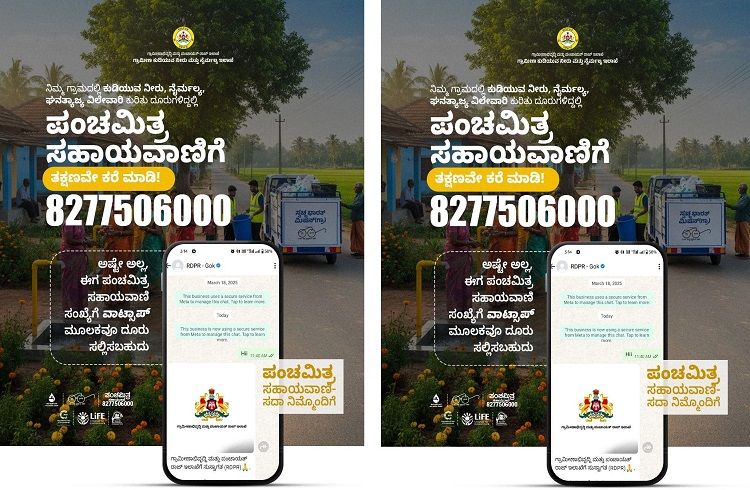 ನಿಮ್ಮ ಗ್ರಾಮದಲ್ಲಿ ಕುಡಿಯುವ ನೀರು, ನೈರ್ಮಲ್ಯ, ಘನತ್ಯಾಜ್ಯ ವಿಲೇವಾರಿ ಕುರಿತು ದೂರುಗಳಿದ್ದಲ್ಲಿ, ಪಂಚಮಿತ್ರ ಸಹಾಯವಾಣಿ 8277506000 ಗೆ ಕರೆ ಮಾಡಿ. ವಾಟ್ಸಾಪ್ ಮೂಲಕವೂ ದೂರು ಸಲ್ಲಿಸಬಹುದು ಎಂದು ಸರ್ಕಾರ ಪ್ರಕಟಣೆ ಹೊರಡಿಸಿದೆ.