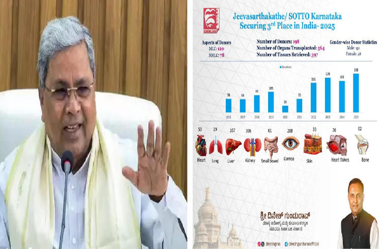 ಬೆಂಗಳೂರು : 2025 ನೇ ಸಾಲಿನಲ್ಲಿ ಅಂಗಾಂಗ ದಾನ ಕಾರ್ಯದಲ್ಲಿ ಇಡೀ ದೇಶದಲ್ಲಿ ಕರ್ನಾಟಕ ಮೂರನೇ ಸ್ಥಾನ ಪಡೆದುಕೊಂಡಿದೆ ಈ ವಿಚಾರವಾಗಿ ಸಿಎಂ ಸಿದ್ದರಾಮಯ್ಯ ತಮ್ಮ ಎಕ್ಷ ಖಾತೆಯ ಮೂಲಕ ಈ ಒಂದು ಮಾಹಿತಿಯನ್ನು ಹಂಚಿಕೊಂಡಿದ್ದಾರೆ ಇದು ಕರ್ನಾಟಕಕ್ಕೆ ಹೆಮ್ಮೆಯ ಕ್ಷಣ.ಅಂಗಾಂಗ ದಾನ ಕಾರ್ಯದಲ್ಲಿ ಕರ್ನಾಟಕ 2025ನೇ ಸಾಲಿನಲ್ಲಿ ದೇಶದಲ್ಲೇ 3ನೇ ಸ್ಥಾನ ಪಡೆದಿದೆ. ಕಳೆದ ವರ್ಷ 198 ದಾನಿಗಳಿಂದ 564 ಅಂಗಾಂಗಗಳ ಕಸಿ ಮಾಡುವ ಮೂಲಕ ನೂರಾರು ಜೀವಗಳಿಗೆ ಮರುಜನ್ಮ ಸಿಕ್ಕಿದಂತಾಗಿದೆ. ಮುಖ್ಯ ಅಂಕಿ-ಅಂಶಗಳು (2025): ಒಟ್ಟು ದಾನಿಗಳು: 198 ಕಿಡ್ನಿ: 306 ಲಿವರ್: 167 ಹೃದಯ: 50 ಶ್ವಾಸಕೋಶ: 29 ಕಣ್ಣು (Cornea): 288 ರಾಜ್ಯದಲ್ಲಿ 2016 ರಿಂದ ಈವರೆಗೂ ದಾನಿಗಳ ಸಂಖ್ಯೆಯಲ್ಲಿ ಗಣನೀಯ ಏರಿಕೆ ಕಂಡುಬರುತ್ತಿರುವುದು ಆಶಾದಾಯಕ ಬೆಳವಣಿಗೆಯಾಗಿದೆ. ಅಂಗಾಂಗ ದಾನವು ಕೇವಲ ಒಂದು ಕೊಡುಗೆಯಲ್ಲ, ಅದು ಮತ್ತೊಬ್ಬರಿಗೆ ನೀಡುವ ಜೀವದಾನ. ಹಾಗಾಗಿ ಇಡೀ ರಾಜ್ಯದ ಜನತೆಯಲ್ಲಿ ವಿನಂತಿಸುವೆ, ‘ಜೀವಸಾರ್ಥಕತೆ’ ಕಾರ್ಯಕ್ರಮದೊಂದಿಗೆ ಕೈಜೋಡಿಸೋಣ ಅಂಗಾಂಗ ದಾನ…