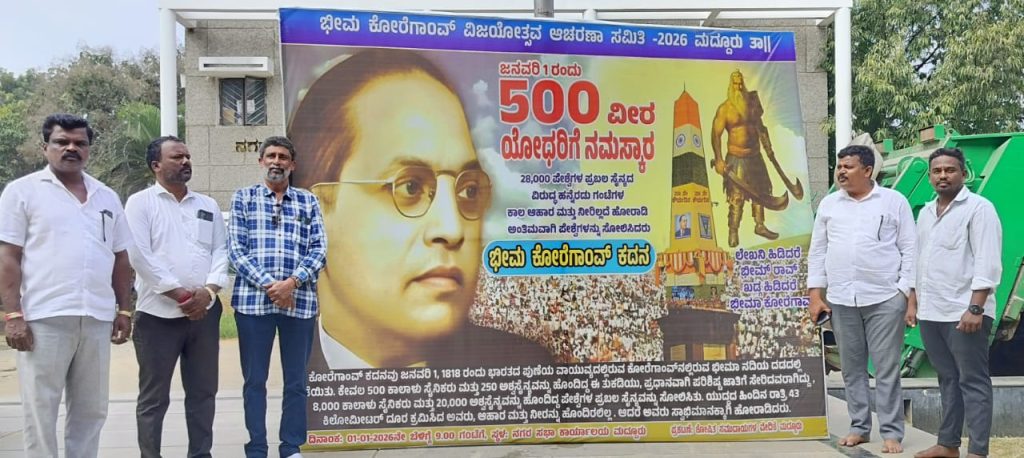 ಮಂಡ್ಯ : ಶತಮಾನಗಳ ಸಿಟ್ಟನ್ನು ಸಿಡಿಮದ್ದಾಗಿಸಿಕೊಂಡು ಸಿದ್ದ ನಾಕಾ ನೇತೃತ್ವದಲ್ಲಿ ಯುದ್ಧ ಗೆದ್ದ ಭೀಮ ಕೋರೆಗಾಂವ್ ಯುದ್ಧವೀರರನ್ನು ನೆನೆಯಬೇಕಿದೆ. ಈ ಹಿನ್ನಲೆಯಲ್ಲಿ ಜ.1ರಂದು ಮದ್ದೂರು ತಾಲೂಕಿನ ಎಲ್ಲಾ ಶೋಷಿತ ಸಮುದಾಯದವರು 208 ನೇ ಭೀಮ ಕೋರೆಗಾಂವ್ ಕದನ ವಿಜಯೋತ್ಸವ ಆಚರಣೆಯಲ್ಲಿ ಭಾಗವಹಿಸಬೇಕೆಂದು ಜಿ.ಪಂ ಮಾಜಿ ಅಧ್ಯಕ್ಷ ಸುರೇಶ್ ಕಂಠಿ ಮಂಗಳವಾರ ಹೇಳಿದರು. ಜ.1 ಗುರುವಾರ ಬೆಳಿಗ್ಗೆ 9 ಗಂಟೆಗೆ ಮದ್ದೂರು ನಗರದ ನಗರಸಭೆ ಮುಂಭಾಗದ ಬಾಬಾ ಸಾಹೇಬ್ ಡಾ. ಬಿ.ಆರ್.ಅಂಬೇಡ್ಕರ್ ಅವರ ಪ್ರತಿಮೆಗೆ ಮಾಲಾರ್ಪಣೆ ಮಾಡಿ ಸಿಹಿ ಹಂಚಿ ಸಂಭ್ರಮಾಚರಣೆ ಮಾಡಲಾಗುವುದು ಎಂದರು. ಭಾರತದಲ್ಲಿ ನಡೆದಿರುವ ಸಾವಿರಾರು ಯುದ್ಧಗಳ ಪೈಕಿ ಭೀಮಾ ಕೋರೆಗಾಂವ್ ಯುದ್ಧದ ವಿಜಯವು ಜಗತ್ತೇ ನಿಬ್ಬೆರಗಾಗುವಂತೆ ಮಾಡಿದ್ದಲ್ಲದೆ ಆ ಯುದ್ಧವು ಮುಂದಿನ ತಲೆಮಾರಿಗಳಿಗೆ ಸ್ವಾಭಿಮಾನದ ಪ್ರತೀಕವಾಗಿ ಶಾಶ್ವತವಾಗಿ ಉಳಿದು ಬಿಟ್ಟಿದೆ. ಕೇವಲ 500ಮಂದಿ ಮಹಾರ್ ಸೈನಿಕರು 28 ಸಾವಿರ ಜಾತಿವಾದಿ ಪೇಶ್ವೆ ಸೈನಿಕರನ್ನು ಸೆದೆಬಡಿದ ಭಾರತದ ಸ್ವಾಭಿಮಾನದ ಇತಿಹಾಸವನ್ನು ಸಾರಿ ಸಾರಿ ಹೇಳುವಂತಿದೆ. ಹೀಗಾಗಿ 1 ಜನವರಿ 1818…