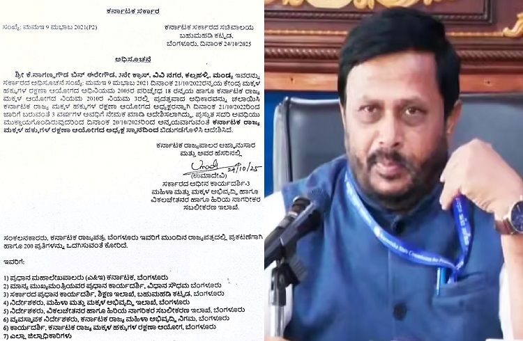 ಬೆಂಗಳೂರು: ಕರ್ನಾಟಕ ಮಕ್ಕಳ ಹಕ್ಕುಗಳ ರಕ್ಷಣಾ ಆಯೋಗದ ಅಧ್ಯಕ್ಷ ಸ್ಥಾನದಿಂದ ಕೆ.ನಾಗಣ್ಣ ಗೌಡ ಅವರನ್ನು ಬಿಡುಗಡೆಗೊಳಿಸಿ ಸರ್ಕಾರವು ಆದೇಶ ಹೊರಡಿಸಿದೆ. ಈ ಕುರಿತಂತೆ ಮಹಿಳಾ ಮತ್ತು ಮಕ್ಕಳ ಅಭಿವೃದ್ಧಿ ಹಾಗೂ ವಿಕಲಚೇತನರ ಹಾಗೂ ಹಿರಿಯ ನಾಗರೀಕರ ಸಬಲೀಕರಣ ಇಲಾಖೆ ಸರ್ಕಾರದ ಅಧೀನ ಕಾರ್ಯದರ್ಶಿ ಅಧಿಸೂಚನೆ ಹೊರಡಿಸಿದ್ದು, ಕೆ.ನಾಗಣ್ಣ ಗೌಡ ಬಿನ್ ಈರೇಗೌಡ, 3ನೇ ಕ್ರಾಸ್, ವಿವಿ ನಗರ, ಕಲ್ಲಹಳ್ಳಿ, ಮಂಡ್ಯ ಇವರನ್ನು ಸರ್ಕಾರದ ಅಧಿಸೂಚನೆ ಸಂಖ್ಯೆ: ಮಮಇ 9 ಮಭಾಬ 2021 ದಿನಾಂಕ 21/10/2022ರನ್ವಯ ಕೇಂದ್ರ ಮಕ್ಕಳ ಹಕ್ಕುಗಳ ರಕ್ಷಣಾ ಆಯೋಗದ ಅಧಿನಿಯಮ 2005ರ ಪರಿಚ್ಛೇಧ 18 ರನ್ವಯ ಹಾಗೂ ಕರ್ನಾಟಕ ರಾಜ ಮಕ್ಕಳ ಆಯೋಗದ ನಿಯಮ 2010ರ ನಿಯಮ 3ರಲ್ಲಿ ಪುದತ್ತವಾದ ಅಧಿಕಾರವನ್ನು ಚಲಾಯಿಸಿ ಕರ್ನಾಟಕ ರಾಜ್ಯ ಮಕ್ಕಳ ಹಕ್ಕುಗಳ ರಕ್ಷಣಾ ಆಯೋಗದ ಅಧ್ಯಕ್ಷರನ್ನಾಗಿ ದಿನಾಂಕ 21/10/2022ರಿಂದ ಜಾರಿಗೆ ಬರುವಂತೆ 3 ವರ್ಷಗಳ ಅವಧಿಗೆ ನೇಮಕ ಮಾಡಿ ಆದೇಶಿಸಲಾಗಿತ್ತು ಎಂದಿದ್ದಾರೆ. ಪ್ರಸ್ತುತ ಸದರಿ ಅವಧಿಯು ಮುಕ್ತಾಯಗೊಂಡಿರುವುದರಿಂದ ದಿನಾಂಕ 20/10/2025ರಿಂದ ಅನ್ವಯವಾಗುವಂತೆ…