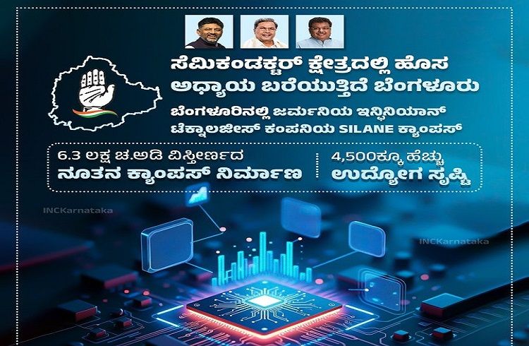 ಬೆಂಗಳೂರು: ಸೆಮಿಕಂಡಕ್ಟರ್ ವಲಯದಲ್ಲಿ ಹೊಸ ಅಧ್ಯಾಯ – ದೇಶದ ತಂತ್ರಜ್ಞಾನ ಕ್ಷೇತ್ರದ ಹೃದಯವಾಗುತ್ತಿದೆ ಬೆಂಗಳೂರು! ಆ ಮೂಲಕ 4,500ಕ್ಕೂ ಹೆಚ್ಚು ಉದ್ಯೋಗವನ್ನು ಸೃಷ್ಠಿಯಾಗುತ್ತಿರುವುದಾಗಿ ಕರ್ನಾಟಕ ಕಾಂಗ್ರೆಸ್ ಹೇಳಿದೆ. ಈ ಬಗ್ಗೆ ಎಕ್ಸ್ ನಲ್ಲಿ ಪೋಸ್ಟ್ ಮಾಡಿದ್ದು, ಜರ್ಮನಿಯ ಪ್ರಸಿದ್ಧ ಇನ್ಫಿನಿಯಾನ್ ಟೆಕ್ನಾಲಜೀಸ್ (Infineon Technologies) ಕಂಪನಿ ಬೆಂಗಳೂರಿನ ತನ್ನ ಎರಡು ಶಾಖೆಗಳನ್ನು ಏಕೀಕರಿಸಿ, ಬಾಗ್ಮನೆ ಸೋಲಾರಿಯಮ್ ಟೆಕ್ ಪಾರ್ಕ್ನಲ್ಲಿ 6.3 ಲಕ್ಷ ಚದರ ಅಡಿ ವಿಸ್ತೀರ್ಣದ ನೂತನ ಕ್ಯಾಂಪಸ್ ‘SILANE’ ನಿರ್ಮಿಸುತ್ತಿದೆ ಎಂದಿದೆ. ಈ ಅತ್ಯಾಧುನಿಕ ಕ್ಯಾಂಪಸ್ನಲ್ಲಿ 1.7 ಲಕ್ಷ ಚದರ ಅಡಿ ಪ್ರದೇಶದಲ್ಲಿ ಸೆಮಿಕಂಡಕ್ಟರ್ ಪ್ರಯೋಗಾಲಯಗಳು ನಿರ್ಮಾಣವಾಗಲಿವೆ. ಇದರಿಂದ 4,500ಕ್ಕೂ ಹೆಚ್ಚು ಉದ್ಯೋಗಗಳು ಸೃಷ್ಟಿಯಾಗಲಿವೆ ಎಂಬುದಾಗಿ ಹೇಳಿದೆ. ಪೂರಕ ವಾತಾವರಣ ನಿರ್ಮಾಣ, ಹೂಡಿಕೆ ಆಕರ್ಷಣೆ, ಉದ್ಯೋಗ ಸೃಷ್ಟಿ, ಆರ್ಥಿಕತೆಗೆ ನವಚೈತನ್ಯ ಕಾಂಗ್ರೆಸ್ ಸರ್ಕಾರದ ಧ್ಯೇಯ ಅಂತ ತಿಳಿಸಿದೆ. https://twitter.com/INCKarnataka/status/1980182997912653980 https://kannadanewsnow.com/kannada/minister-krishna-byre-gowda-gave-this-important-update-regarding-the-hasanambe-darshan/ https://kannadanewsnow.com/kannada/whether-the-debt-is-lakhs-or-crores-use-cardamom-clove-and-cinnamon-repayment-of-the-debt-is-guaranteed/