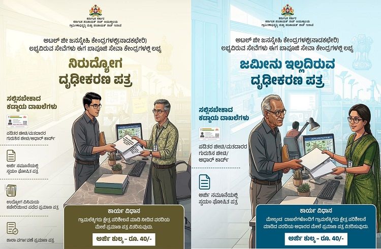 ಬೆಂಗಳೂರು: ರಾಜ್ಯದ ನಾಗರಿಕರಿಗೆ ಸರ್ಕಾರವು ಸಿಹಿ ಸುದ್ದಿಯೊಂದನ್ನು ನೀಡಿದೆ. ಜಾತಿ, ಆದಾಯ ಹಾಗೂ ಇನ್ನಿತರ ಪ್ರಮುಖ ಪ್ರಮಾಣ ಪತ್ರಗಳನ್ನು ಪಡೆಯಲು ಇನ್ನು ಮುಂದೆ ತಾಲ್ಲೂಕು ಕೇಂದ್ರಗಳ ನಾಡಕಚೇರಿಗಳಿಗೆ (Atalji Janasnehi Kendra) ಅಲೆಯುವ ಅಗತ್ಯವಿಲ್ಲ. ಸಾರ್ವಜನಿಕರ ಸಮಯ ಮತ್ತು ಹಣ ಉಳಿಸುವ ಉದ್ದೇಶದಿಂದ, ಎಲ್ಲಾ ಗ್ರಾಮ ಪಂಚಾಯತಿಗಳಲ್ಲಿರುವ ‘ಬಾಪೂಜಿ ಸೇವಾ ಕೇಂದ್ರ’ಗಳಲ್ಲೇ ಈ ಸೇವೆಗಳನ್ನು ಲಭ್ಯವಾಗುವಂತೆ ಮಾಡಲಾಗಿದೆ. ಕರ್ನಾಟಕ ಸರ್ಕಾರದ ಗ್ರಾಮೀಣಾಭಿವೃದ್ಧಿ ಮತ್ತು ಪಂಚಾಯತ್ ರಾಜ್ ಇಲಾಖೆಯು ಈ ಕುರಿತು ಅಧಿಕೃತ ಮಾಹಿತಿ ನೀಡಿದ್ದು, ಬಾಪೂಜಿ ಸೇವಾ ಕೇಂದ್ರಗಳಲ್ಲಿ ದೊರೆಯುವ ಕೆಲವು ಪ್ರಮುಖ ಸೇವೆಗಳು ಮತ್ತು ಅವುಗಳಿಗೆ ಬೇಕಾಗುವ ದಾಖಲೆಗಳ ವಿವರ ಹೀಗಿದೆ: ವ್ಯವಸಾಯಗಾರರ ಕುಟುಂಬದ ಸದಸ್ಯ ದೃಢೀಕರಣ ಪತ್ರ ಅಗತ್ಯ ದಾಖಲೆಗಳು: ಪಡಿತರ ಚೀಟಿ/ಮತದಾರರ ಗುರುತಿನ ಚೀಟಿ/ಆಧಾರ್ ಕಾರ್ಡ್ ಹಾಗೂ ಪಹಣಿ ಪತ್ರ. ವಿಧಾನ: ಪಹಣಿಯಲ್ಲಿ ಅರ್ಜಿದಾರರ ಹೆಸರಿದ್ದರೆ ಅಂದೇ ಪ್ರಮಾಣ ಪತ್ರ ವಿತರಿಸಲಾಗುವುದು (One Day Service). ಹೆಸರಿಲ್ಲದಿದ್ದಲ್ಲಿ ಗ್ರಾಮ ಲೆಕ್ಕಿಗರ ಸ್ಥಳ ಪರಿಶೀಲನೆ ವರದಿ ಆಧಾರದ ಮೇಲೆ…