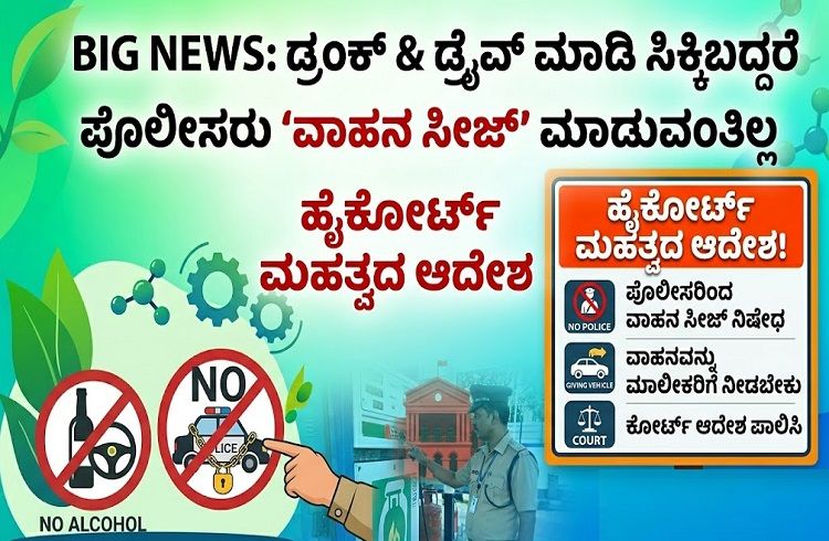 BIG NEWS : ಡ್ರಂಕ್ & ಡ್ರೈವ್ ಮಾಡಿ ಸಿಕ್ಕಿಬಿದ್ದರೆ ಪೊಲೀಸರು `ವಾಹನ ಸೀಜ್’ ಮಾಡುವಂತಿಲ್ಲ : ಹೈಕೋರ್ಟ್ ಮಹತ್ವದ ಆದೇಶ