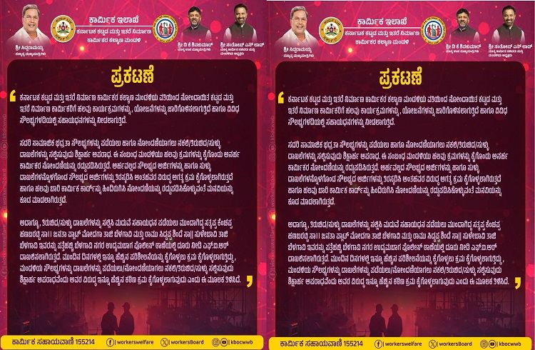 ಬೆಂಗಳೂರು : ಸುಳ್ಳು ದಾಖಲೆ ಸಲ್ಲಿಸಿ ಕಾರ್ಮಿಕ ಕಾರ್ಡ್ ಪಡೆದ ಅನರ್ಹರರಿಗೆ ರಾಜ್ಯ ಸರ್ಕಾರವು ಬಿಗ್ ಶಾಕ್ ನೀಡಿದ್ದು, ಎಫ್ ಐಆರ್ ದಾಖಲಿಸಿ ಕಾನೂನು ಕ್ರಮ ಕೈಗೊಳ್ಳಲು ಮುಂದಾಗಿದೆ. ಹೌದು, ಮಂಡಳಿಯ ಸಾಮಾಜಿಕ ಭದ್ರತಾ ಸೌಲಭ್ಯಗಳನ್ನು ಪಡೆಯಲು ಹಾಗೂ ನೋಂದಣಿಯಾಗಲು ನಕಲಿ/ ತಿರುಚಿದ/ ಸುಳ್ಳು ದಾಖಲೆಗಳನ್ನು ಸಲ್ಲಿಸುವುದು ಶಿಕ್ಷಾರ್ಹ ಅಪರಾಧ ಅನರ್ಹ ಕಾರ್ಮಿಕರ ನೋಂದಣಿ ರದ್ದುಪಡಿಸಲು ಮಂಡಳಿಯಿಂದ ಹಲವು ಕಾರ್ಯಕ್ರಮ ಜಾರಿಯಲ್ಲಿದ್ದು, ಸುಳ್ಳು ದಾಖಲೆ ಸಲ್ಲಿಸಿ ನೋಂದಣಿ ಮಾಡಿಕೊಂಡು ಸೌಲಭ್ಯ ಪಡೆಯುವವರ ವಿರುದ್ಧ ಎಫ್ಐಆರ್ ದಾಖಲಿಸಿ ಕಾನೂನು ಕ್ರಮಗಳನ್ನೂ ಈಗಾಗಲೇ ಕೈಗೊಳ್ಳಲಾಗುತ್ತಿದೆ. ಕರ್ನಾಟಕ ಕಟ್ಟಡ ಮತ್ತು ಇತರೆ ನಿರ್ಮಾಣ ಕಾರ್ಮಿಕರ ಕಲ್ಯಾಣ ಮ೦ಡಳಿಯ ವತಿಯಿ೦ದ ನೋ೦ದಾಯಿತ ಕಟ್ಟಡ ಮತ್ತು ಇತರೆ ನಿರ್ಮಾಣ ಕಾರ್ಮಿಕರಿಗೆ ಹಲವು ಕಾರ್ಯಕ್ರಮಗಳನ್ನು, ಯೋಜನೆಗಳನ್ನು ಜಾರಿಗೊಳಿಸಲಾಗುತ್ತಿದೆ ಹಾಗೂ ವಿವಿಧ ಸೌಲಭ್ಯಗಳಡಿಯಲ್ಲಿ ಸಹಾಯಧನಗಳನ್ನು ನೀಡಲಾಗುತ್ತಿದೆ. ಸದರಿ ಸಾಮಾಜಿಕ ಭದ್ರತಾ ಸೌಲಭ್ಯಗಳನ್ನು ಪಡೆಯಲು ಹಾಗೂ ನೋ೦ದಣಿಯಾಗಲು ನಕಲಿ/ತಿರುಚಿದ/ಸುಳ್ಳು ದಾಖಲೆಗಳನ್ನು ಸಲ್ಲಿಸುವುದು ಶಿಕ್ಷಾರ್ಹ ಅಪರಾಧ. ಈ ಸ೦ಬ೦ಧ ಮ೦ಡಳಿಯು ಹಲವು ಕ್ರಮಗಳನ್ನು ಕೈಗೊ೦ಡು…