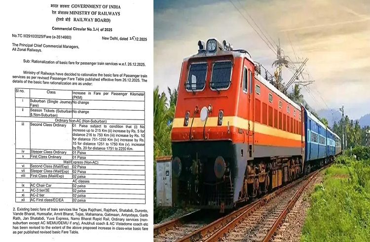 ನವದೆಹಲಿ: 215 ಕಿ.ಮೀಗಿಂತ ದೂರದ ಸಾಮಾನ್ಯ ರೈಲುಗಳ ಟಿಕೆಟ್ ದರ ಪ್ರತಿ ಕಿ.ಮೀಗೆ 1 ಪೈಸೆ, ಎ.ಸಿ ಮತ್ತು ಎ.ಸಿ ಸೌಲಭ್ಯ ಇಲ್ಲದಮೇಲ್, ಎಕ್ಸ್ಪ್ರೆಸ್ ರೈಲುಗಳಲ್ಲಿ ಪ್ರತಿ ಕಿ.ಮೀಗೆ 2 ಪೈಸೆ ಹೆಚ್ಚಿಸಿರುವ ಹೊಸ ದರವು ಇಂದಿನಿಂದ ಜಾರಿಯಾಗಲಿದೆ. ಡಿ.21ರಂದು ರೈಲ್ವೆ ಸಚಿವಾಲಯ ದರ ಹೆಚ್ಚಳದ ಬಗ್ಗೆ ಘೋಷಿಸಿದ್ದು, ಇಂದಿನಿಂದ ಜಾರಿಯಾಗಲಿದೆ ಎಂದು ಅಧಿಕೃತ ಪ್ರಕಟಣೆ ಹೊರಡಿಸಿದೆ. ಒಂದು ವರ್ಷದಲ್ಲಿ ರೈಲ್ವೆದರ ಹೆಚ್ಚಿಸುತ್ತಿರುವುದು ಇದು 2ನೇ ಸಲ. ಕಳೆದ ಜುಲೈನಲ್ಲಿ ಏರಿಕೆಯಾಗಿತ್ತು. ಹೊಸ ದರವು ಅಲ್ಪಮಟ್ಟದಏರಿಕೆಯಾಗಿದ್ದು, 500ಕಿ.ಮೀ. ನಾನ್ ಎ.ಸಿ ವಿಭಾಗದ ಟಿಕೆಟ್ ದರ 10 ರು.ನಷ್ಟು ಹೆಚ್ಚಳವಾಗಲಿದೆ. ಪಾಸ್ ದರದಲ್ಲಿ ಯಾವುದೇ ಬದಲಾವಣೆ ಇರದು. ವರ್ಗ- ಪರಿಷ್ಕೃತ ದರ- ದೂರ ಮಿತಿ ಉಪನಗರ (ಸ್ಥಳೀಯ) ರೈಲುಗಳು- ಯಾವುದೇ ಹೆಚ್ಚಳವಿಲ್ಲ- ಎಲ್ಲಾ ದೂರಗಳು ಮಾಸಿಕ ಸೀಸನ್ ಟಿಕೆಟ್ಗಳು (MST)- ಯಾವುದೇ ಹೆಚ್ಚಳವಿಲ್ಲ- ಎಲ್ಲಾ ದೂರಗಳು ಸಾಮಾನ್ಯ ವರ್ಗ (ಕಡಿಮೆ ದೂರ)- ಯಾವುದೇ ಹೆಚ್ಚಳವಿಲ್ಲ- 215 ಕಿ.ಮೀ ವರೆಗೆ ಸಾಮಾನ್ಯ ವರ್ಗ (ದೀರ್ಘ…