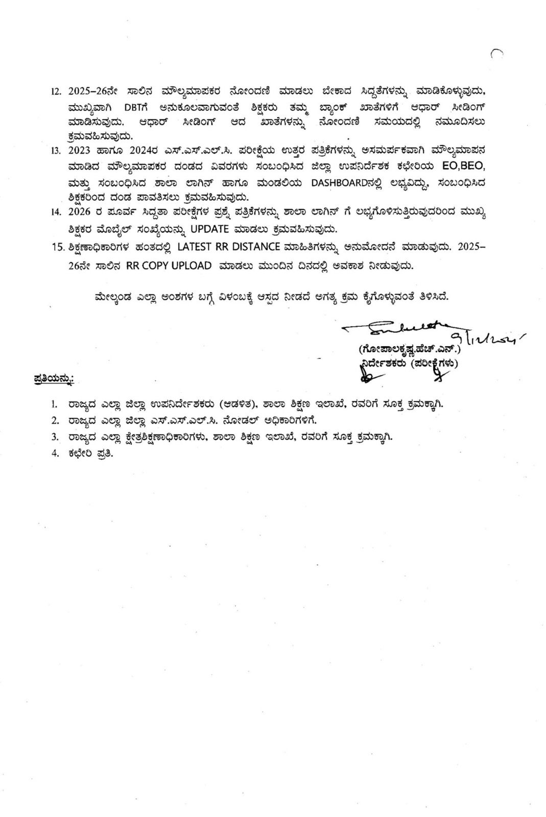 ದಿನಾಂಕ:08-12-2025 ರಂದು ನಡೆದ ವಿಡಿಯೋ ಕಾನ್ಸರೆನ್ಸ್ನಲ್ಲಿ ಚರ್ಚಿಸಿ ಸೂಚಿಸಿರುವಂತೆ ಈ ಕೆಳಕಂಡ ಅಂಶಗಳನ್ನು ಪರೀಕ್ಷಾ ಕೆಂದ್ರಗಳ ರಚನೆ ಸಂಬಂಧ ಅಳವಡಿಸಿಕೊಳ್ಳಲು ಸೂಚಿಸಿದೆ.