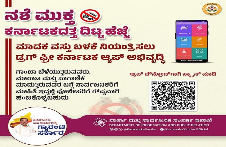 ಬೆಂಗಳೂರು : ಮಾದಕ ವಸ್ತು ಬಳಕೆ ನಿಯಂತ್ರಿಸಲು ಡ್ರಗ್ ಫ್ರೀ ಕರ್ನಾಟಕ ಆ್ಯಪ್ ಅನ್ನು ಪೊಲೀಸ್ ಇಲಾಖೆ ಅಭಿವೃದ್ಧಿಪಡಿಸಿದೆ.