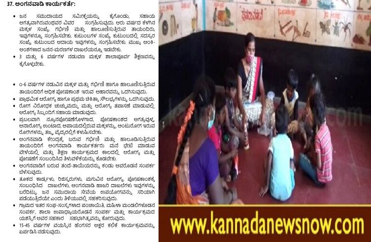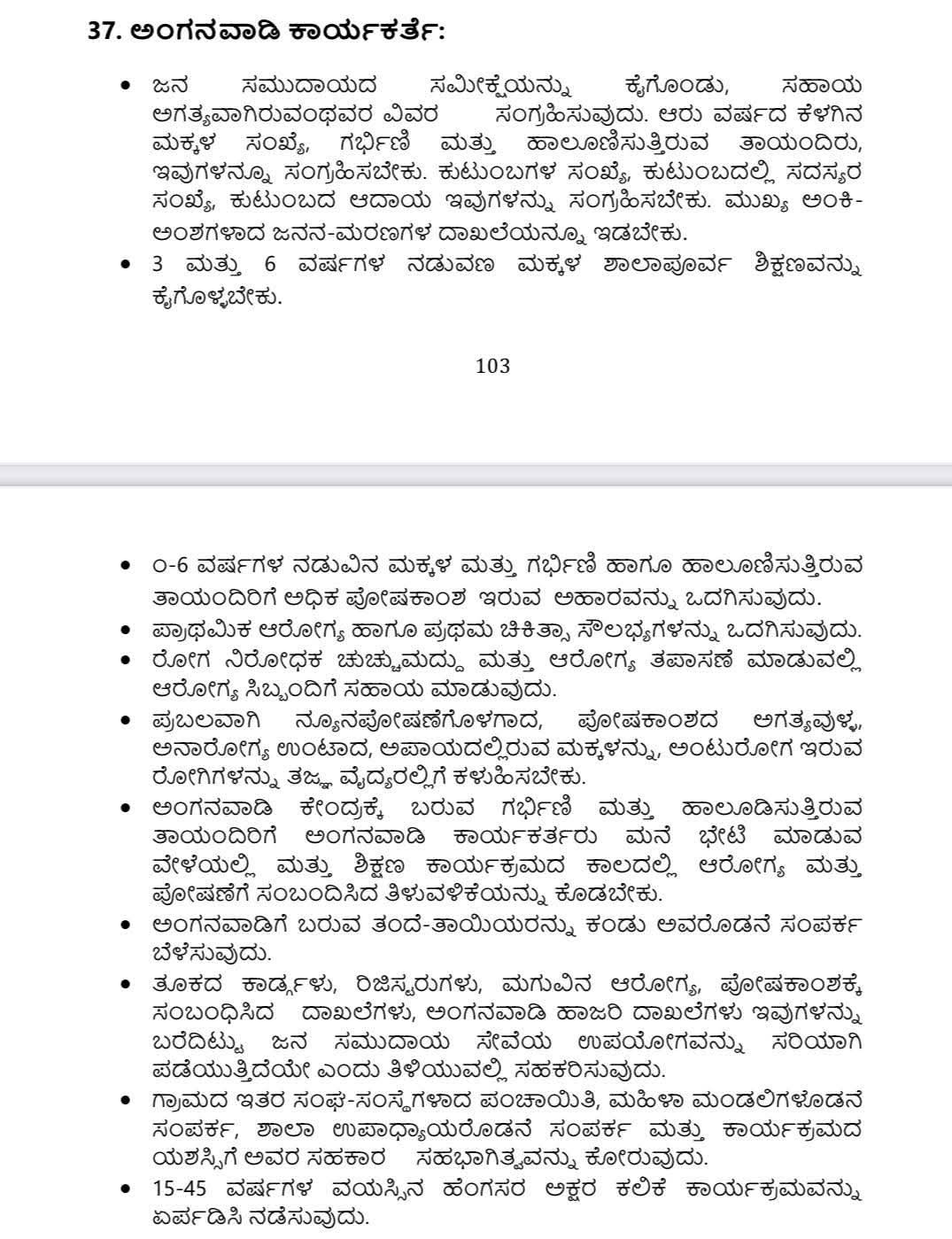 ಬೆಂಗಳೂರು : ರಾಜ್ಯದಲ್ಲಿ ಕಾರ್ಯನಿರ್ವಹಿಸುತ್ತಿರುವ ಅಂಗನವಾಡಿ ಕಾರ್ಯಕರ್ತೆರ ಜವಾಬ್ದಾರಿಗಳೇನು? ಎಂಬುದರ ಕುರಿತು ಇಲ್ಲಿದೆ ಸಂಪೂರ್ಣ ಮಾಹಿತಿ.