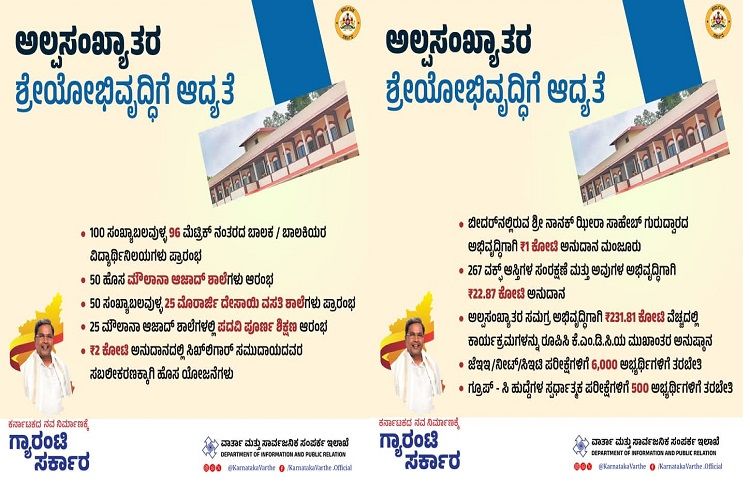 ಅಲ್ಪಸಂಖ್ಯಾತರ ಶ್ರೇಯೋಭಿವೃದ್ಧಿಗೆ ಆದ್ಯತೆ#GuaranteeSarkar #KarnatakaGovt pic.twitter.com/YJ9U7iligp