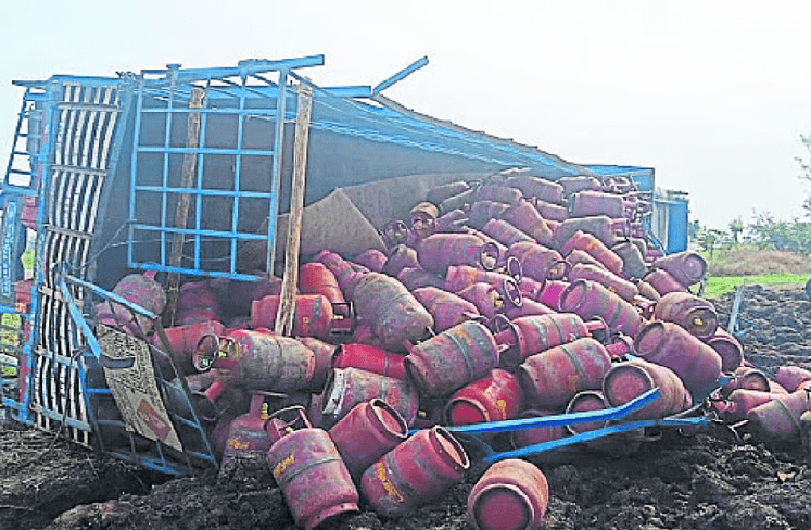 ಸಿಲಿಂಡರ್ ತುಂಬಿದ್ದ ವಾಹನ ಇದಾಗಿದ್ದರಿಂದ ಕೆಲಕಾಲ ಸ್ಥಳೀಯರಲ್ಲಿ ಆತಂಕದ ವಾತಾವರಣ ನಿರ್ಮಾಣವಾಗಿತ್ತು. ಅದೃಷ್ಟವಶಾತ್ ಯಾವುದೇ ಅನಿಲ ಸ್ಫೋಟ ಆಗಿಲ್ಲ. ಭಾರತ್ ಗ್ಯಾಸ್‌ ಕಂಪನಿಗೆ ಸೇರಿದ ಸಿಲಿಂಡರ್‌ಗಳನ್ನು ಸಾಗಿಸುತ್ತಿದ್ದ ಲಾರಿ ಉರುಳಿ ಬಿದ್ದಿದ್ದರಿಂದ ಸಿಲಿಂಡರ್‌ಗಳು ಚೆಲ್ಲಾಪಿಲ್ಲಿಯಾಗಿ ಬಿದ್ದಿವೆ. ಆದ್ರೆ ಅದೃಷ್ಟವಶಾತ್ ಯಾವುದೇ ಪ್ರಾಣಹಾನಿ ಸಂಭವಿಸಿಲ್ಲ.