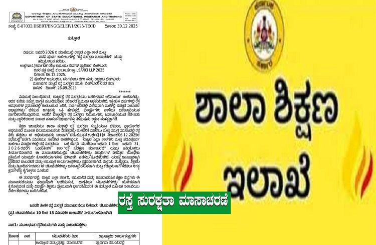 ಬೆಂಗಳೂರು :ಜನವರಿ 2026 ರ ಮಾಹೆಯಲ್ಲಿ ರಾಜ್ಯದ ಎಲ್ಲಾ ಶಾಲೆ ಮತ್ತು ಪದವಿ ಪೂರ್ವ ಕಾಲೇಜುಗಳಲ್ಲಿ “ರಸ್ತೆ ಸುರಕ್ಷತಾ ಮಾಸಾಚರಣೆ’ ಯನ್ನು ಹಮ್ಮಿಕೊಳ್ಳುವ ಕುರಿತು ಶಿಕ್ಷಣ ಇಲಾಖೆ ಮಹತ್ವದ ಆದೇಶ ಹೊರಡಿಸಿದೆ.