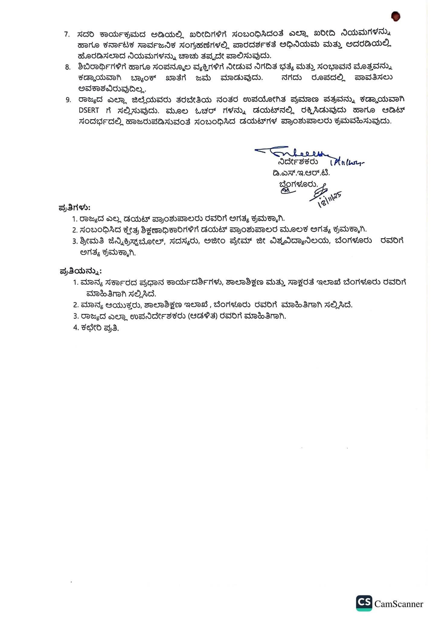 Week – 9 ಮುಖಾಮುಖಿ ತರಬೇತಿಯನ್ನು ಆಯೋಜಿಸಲು ದಿನಾಂಕ: 09-05-2025 ರ ಈ ಕಛೇರಿ ಜ್ಞಾಪನ ಪತ್ರದ ಅನುಬಂಧ-1 ರಂತೆ ಜಿಲ್ಲಾವಾರು week-1 ಮತ್ತು week-9 ಮುಖಾಮುಖಿ ತರಬೇತಿಗೆ ಅನುದಾನ ಬಿಡುಗಡೆಮಾಡಲಾಗಿತ್ತು. ಸದರಿ ಅನುದಾನವನ್ನು ಬಳಸಿ, ದಿನಾಂಕ: 09-05-2025 ರ ಈ ಕಛೇರಿ ಜ್ಞಾಪನ ಪತ್ರದನ್ವಯ ಘಟಕ ವೆಚ್ಚ ರೂ.290/- ರಂತೆ ಮಾದರಿ ಬ್ರೇಕ್ಅಪ್ ಅನುಗುಣವಾಗಿ ತರಬೇತಿಯನ್ನು ಪೂರ್ಣಗೊಳಿಸಲು ಸೂಚಿಸಿದೆ.