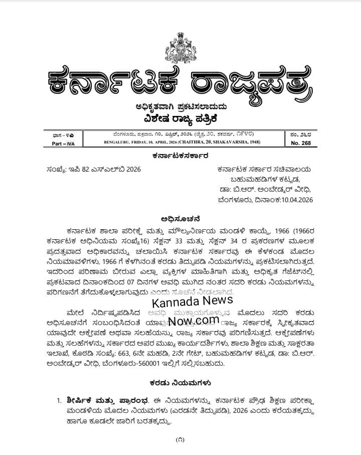 ಈ ಹೊಸ ಪರೀಕ್ಷಾ ನಿಯಮವು 2025-26ನೇ ಶೈಕ್ಷಣಿಕ ಸಾಲಿನಿಂದಲೇ ಜಾರಿಗೆ ಬರಲಿದೆ. ಶಿಕ್ಷಣ ಇಲಾಖೆ ಹೊರಡಿಸಿರುವ ಈ ಕರಡು ಅಧಿಸೂಚನೆಗೆ ಸಾರ್ವಜನಿಕರು ಅಥವಾ ಸಂಬಂಧಪಟ್ಟವರು ಆಕ್ಷೇಪಣೆ ಸಲ್ಲಿಸಲು 7 ದಿನಗಳ ಕಾಲಾವಕಾಶ ನೀಡಲಾಗಿದೆ. ಆಕ್ಷೇಪಣೆಗಳ ಪರಿಶೀಲನೆಯ ನಂತರ ಅಂತಿಮ ಆದೇಶ ಹೊರಬೀಳಲಿದೆ.