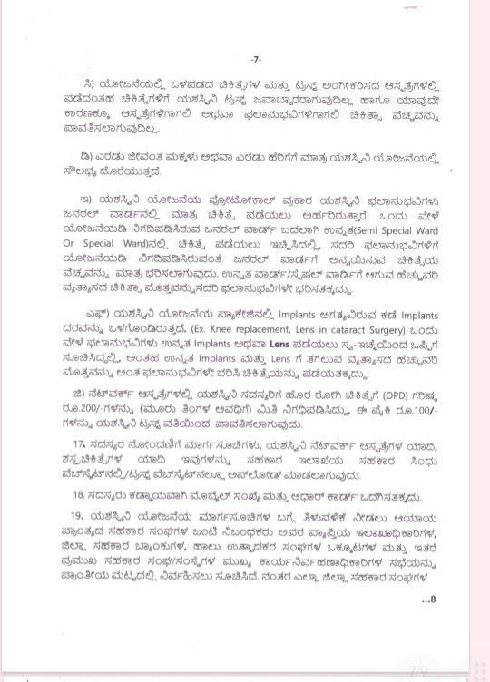 ಮುಖ್ಯಕಾರ್ಯನಿರ್ವಹಣಾಧಿಕಾರಿ (ಪ), ಯಶಸ್ವಿನಿ ಟ್ರಸ್ಟ್ ಇವರ ಪತ್ರದಲ್ಲಿ ಯಶಸ್ವಿನಿ ಯೋಜನೆಯು ಸಹಕಾರ ಸಂಘಗಳ ಸದಸ್ಯರ ಅನುಕೂಲಕ್ಕಾಗಿ ಸರ್ಕಾರವು ಜಾರಿಗೊಳಿಸಿರುವ ಒಂದು ಪ್ರತಿಷ್ಠಿತ (Flagship) ವಿಶಿಷ್ಟ್ಯ ಯೋಜನೆಯಾಗಿದ್ದು, ಇದರಲ್ಲಿ ಯಶಸ್ವಿನಿ ಫೋಟೋಕಾಲ್ನಂತೆ ನಿಗದಿಪಡಿಸಿರುವ ಚಿಕಿತ್ಸೆಗಳ ಪ್ಯಾಕೇಜಿನ ದರದ ಮಿತಿಗೊಳಪಟ್ಟು, ಫಲಾನುಭವಿ ಮತ್ತು ಅವರ ಕುಟುಂಬಕ್ಕೆ ವಾರ್ಷಿಕ ಗರಿಷ್ಟ ರೂ.5.00 ಲಕ್ಷ ವೈದ್ಯಕೀಯ ಚಿಕಿತ್ಸಾ ವೆಚ್ಚದ ಮಿತಿಯೊಂದಿಗೆ ನೆಟ್ವರ್ಕ್ ಆಸ್ಪತ್ರೆಗಳಲ್ಲಿ ಚಿಕಿತ್ಸೆ ಪಡೆಯಲು ಅವಕಾಶ ಇರುತ್ತದೆ ಎಂದು ಹೇಳಿದ್ದಾರೆ.