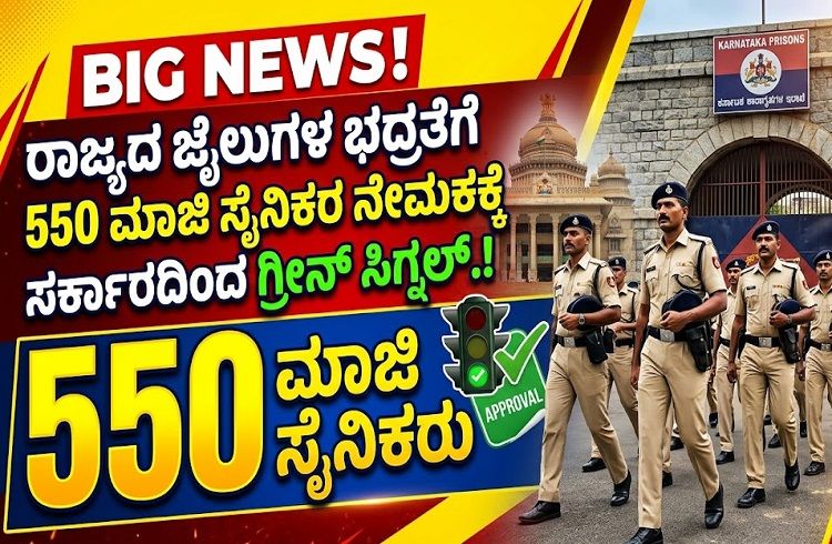 BIG NEWS : ರಾಜ್ಯದ ಜೈಲುಗಳ ಭದ್ರತೆಗೆ 550 ಮಾಜಿ ಸೈನಿಕರ ನೇಮಕಕ್ಕೆ ಸರ್ಕಾರದಿಂದ ಗ್ರೀನ್ ಸಿಗ್ನಲ್.!