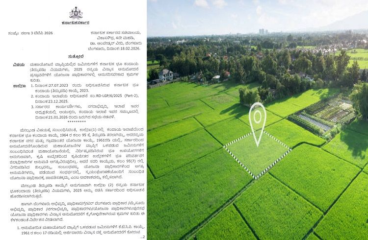 ಬೆಂಗಳೂರು : ಮಹಾಯೋಜನೆ ವ್ಯಾಪ್ತಿಯಲ್ಲಿನ ಜಮೀನುಗಳಿಗೆ ಕರ್ನಾಟಕ ಭೂ ಕಂದಾಯ (ತಿದ್ದುಪಡಿ) ನಿಯಮಗಳು, 2025 ರನ್ವಯ ವಿನ್ಯಾಸ ಅನುಮೋದನೆ ಪ್ರಸ್ತಾವನೆಗಳಿಗೆ ಯೋಜನಾ ಪ್ರಾಧಿಕಾರಗಳಲ್ಲಿ ಅನುಸರಿಸಬೇಕಾದ ಕ್ರಮಗಳ ಕುರಿತು ರಾಜ್ಯ ಸರ್ಕಾರ ಮಹತ್ವದ ಆದೇಶ ಹೊರಡಿಸಿದೆ.