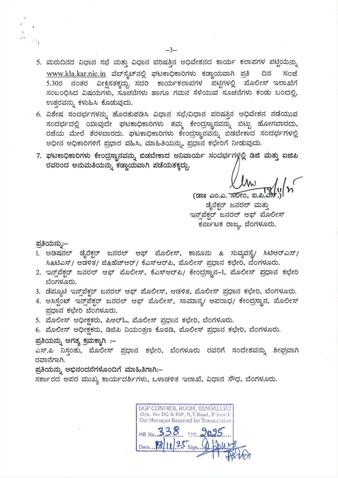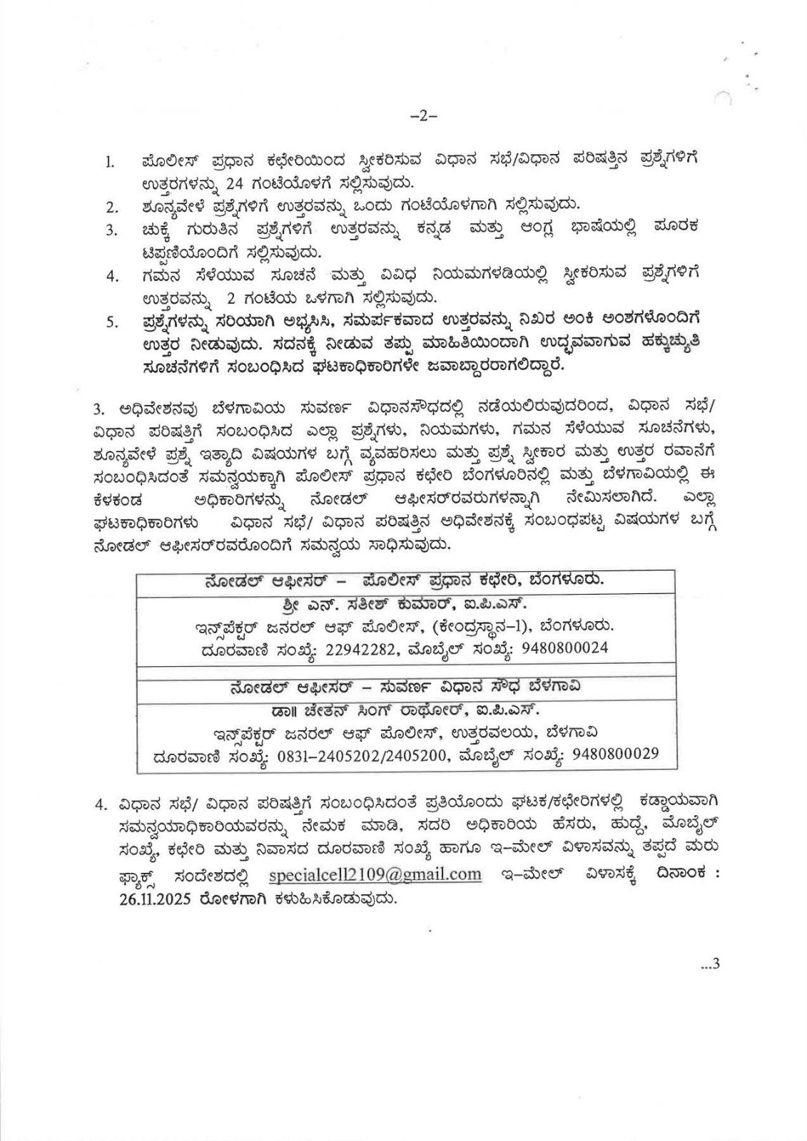 2. ಅಧಿಕಾರಿಗಳು ಮತ್ತು ಸಿಬ್ಬಂದಿ ವರ್ಗದವರು ಪೊಲೀಸ್ ಪ್ರಧಾನ ಕಛೇರಿಯಿಂದ ಕಳುಹಿಸಿದ ವಿಧಾನ ಸಭೆ/ ವಿಧಾನ ಪರಿಷತ್ತಿನ ಪ್ರಶ್ನೆಗಳಿಗೆ ಸಮರ್ಪಕವಾದ ಉತ್ತರವನ್ನು ತಯಾರಿಸಿ ಶೀಘ್ರ ಮಾಹಿತಿಯನ್ನು ಸಲ್ಲಿಸುವುದು. ಈ ಸಂಬಂಧ ಘಟಕಾಧಿಕಾರಿಗಳಿಗೆ ಕೆಳಕಂಡ ನಿರ್ದೇಶನಗಳನ್ನು ನೀಡಲಾಗಿದೆ.