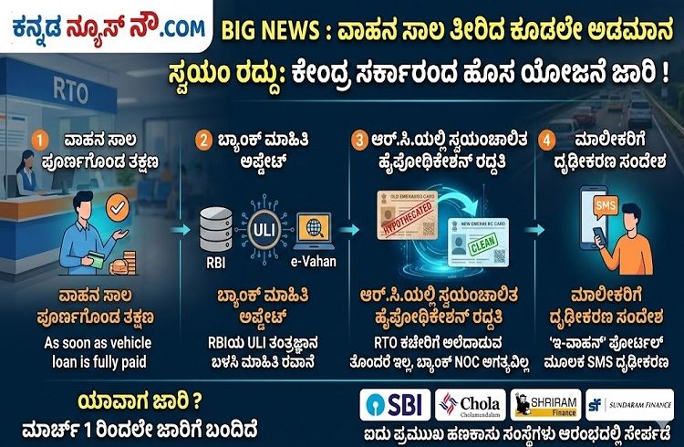 BIG NEWS : ವಾಹನ ಸಾಲ ತೀರಿದ ಕೂಡಲೇ ಅಡಮಾನ ಸ್ವಯಂ ರದ್ದು: ಕೇಂದ್ರ ಸರ್ಕಾರದ ಹೊಸ ಯೋಜನೆ ಜಾರಿ !