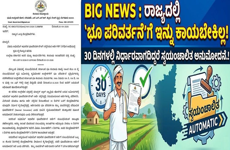 BIG NEWS : ರಾಜ್ಯದಲ್ಲಿ `ಭೂ ಪರಿವರ್ತನೆ’ಗೆ ಇನ್ನು ಕಾಯಬೇಕಿಲ್ಲ: 30 ದಿನಗಳಲ್ಲಿ ನಿರ್ಧಾರವಾಗದಿದ್ದರೆ ಸ್ವಯಂಚಾಲಿತ ಅನುಮೋದನೆ.!