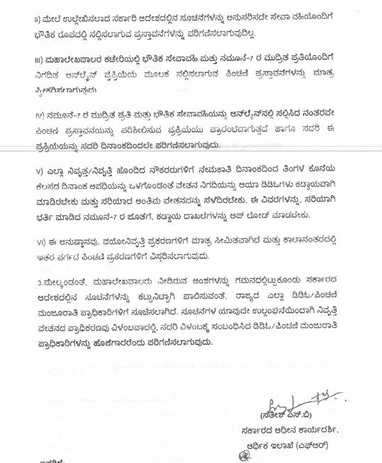 ii) ಮೇಲೆ ಉಲ್ಲೇಖಿಸಲಾದ ಸರ್ಕಾರಿ ಆದೇಶದಲ್ಲಿನ ಸೂಚನೆಗಳನ್ನು ಅನುಸರಿಸದೇ ಸೇವಾ ವಹಿಯೊಂದಿಗೆ ಭೌತಿಕ ರೂಪದಲ್ಲಿ ಸಲ್ಲಿಸಲಾಗುವ ಪ್ರಸ್ತಾವನೆಗಳನ್ನು ಪರಿಗಣಿಸಲಾಗುವುದಿಲ್ಲ.