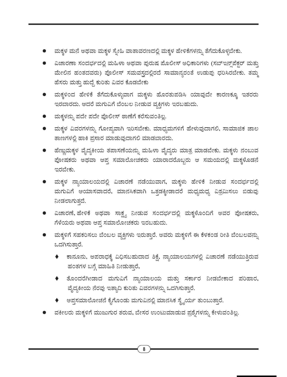 ಅದರಲ್ಲೂ ಮಕ್ಕಳನ್ನು ಪೊಲೀಸ್ ಠಾಣೆಗೆ ದೂರು ಕೊಡಲೋ, ಇಲ್ಲವೇ ವಿಚಾರಣೆಗಳಿಗೆ ಕರೆದೊಯ್ಯುವುದೆಂದರೆ ಅದು ಅತ್ಯಂತ ಕಠಿಣವಾದುದು ಇತ್ಯಾದಿ.