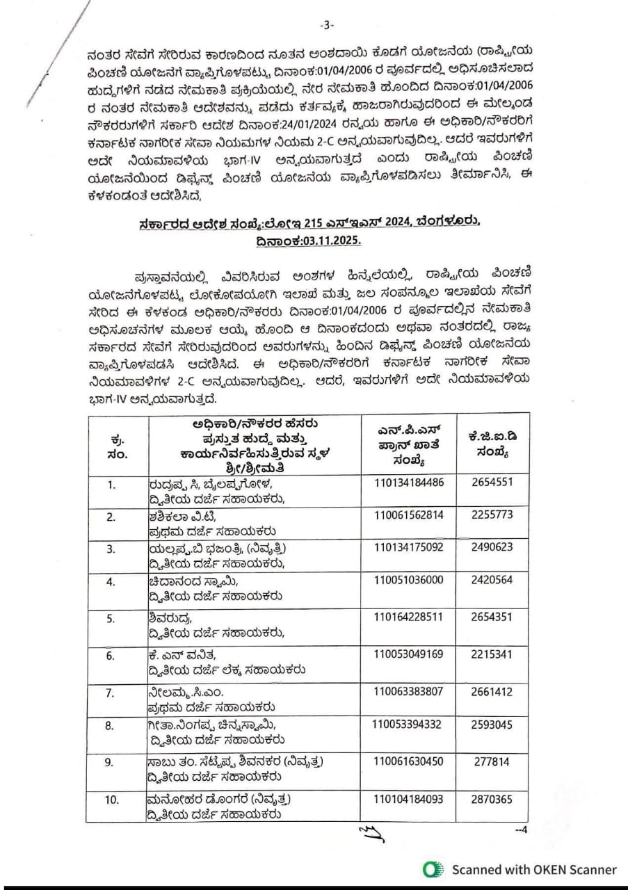 ಅದರಂತೆ, ಮೇಲೆ ಓದಲಾದ ಕ್ರಮ ಸಂಖ್ಯೆ (3) ರಲ್ಲಿ ಲೋಕೋಪಯೋಗಿ ಇಲಾಖೆಯಲ್ಲಿನ ಗ್ರೂಪ್-ಸಿ ವೃಂದದ ಪ್ರಥಮ ದರ್ಜೆ ಸಹಾಯಕರು ಹಾಗೂ ದ್ವಿತೀಯ ದರ್ಜೆ ಸಹಾಯಕರುಗಳನ್ನು ಹಳೆಯ ಡಿಫೈನ್ಸ್ ಪಿಂಚಣಿಗೆ ಯೋಜನೆಗೆ ಒಳಪಡಿಸಿರುವಂತೆ ನೇಮಕಾತಿ ಪ್ರಾಧಿಕಾರವಾದ ಮುಖ್ಯ ಇಂಜಿನಿಯರ್, ಸಂಪರ್ಕ ಮತ್ತು ಕಟ್ಟಡ(ದ) ಬೆಂಗಳೂರು ಇವರು ನಮೂನೆ-1 ಮತ್ತು ನಮೂನೆ-2 ನ್ನು ಭರ್ತಿ ಮಾಡಿ ದಿನಾಂಕ:30/11/2024 ರಲ್ಲಿ ಸರ್ಕಾರಕ್ಕೆ ಪ್ರಸ್ತಾವನೆ ಸಲ್ಲಿಸಿರುತ್ತಾರೆ.