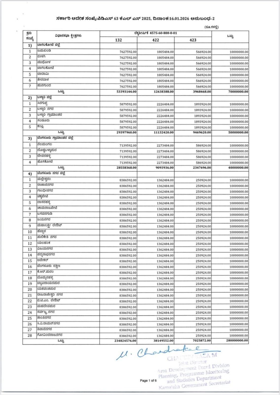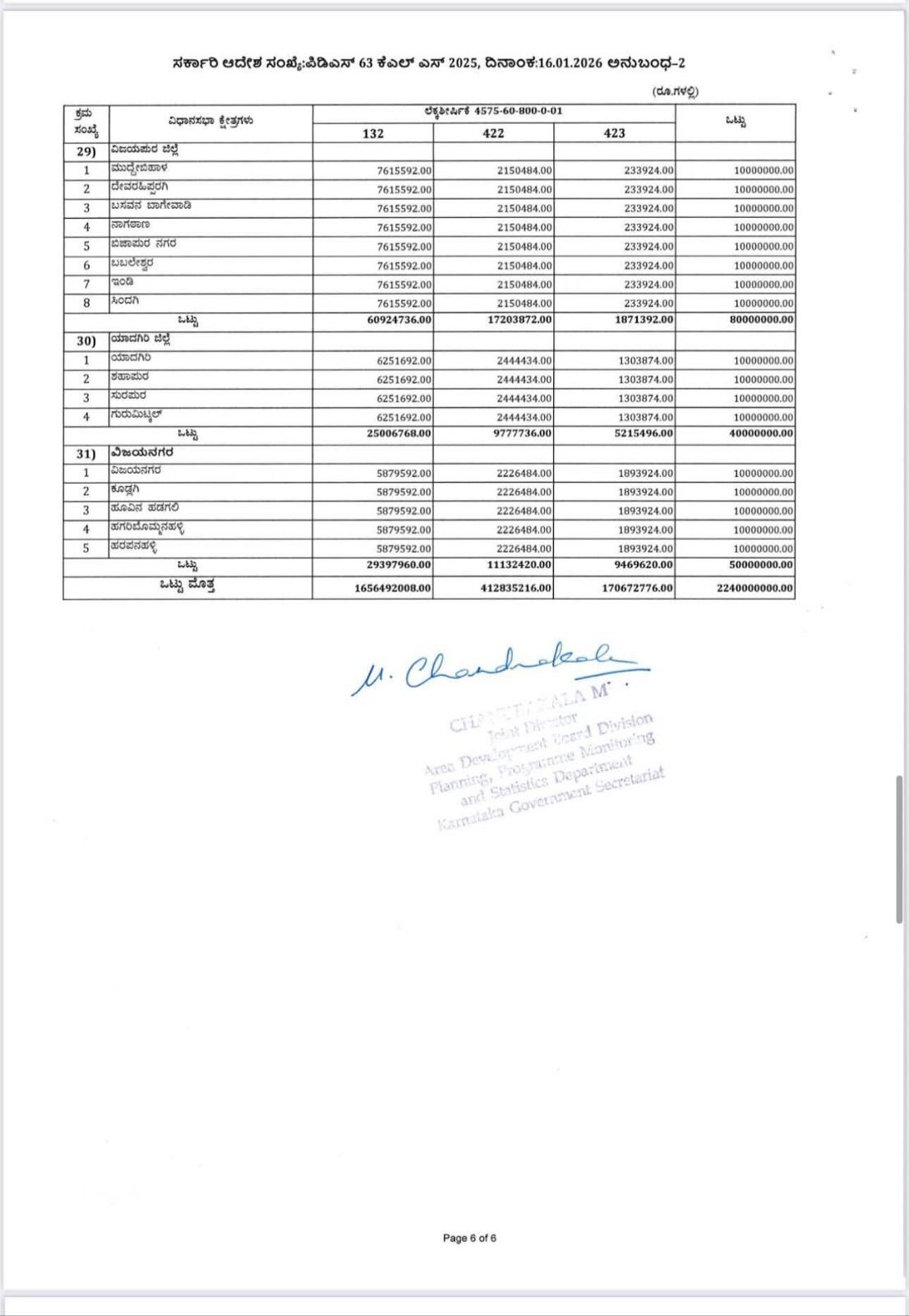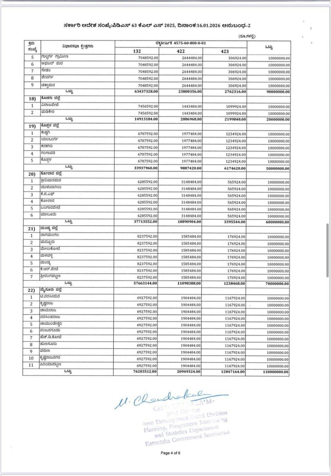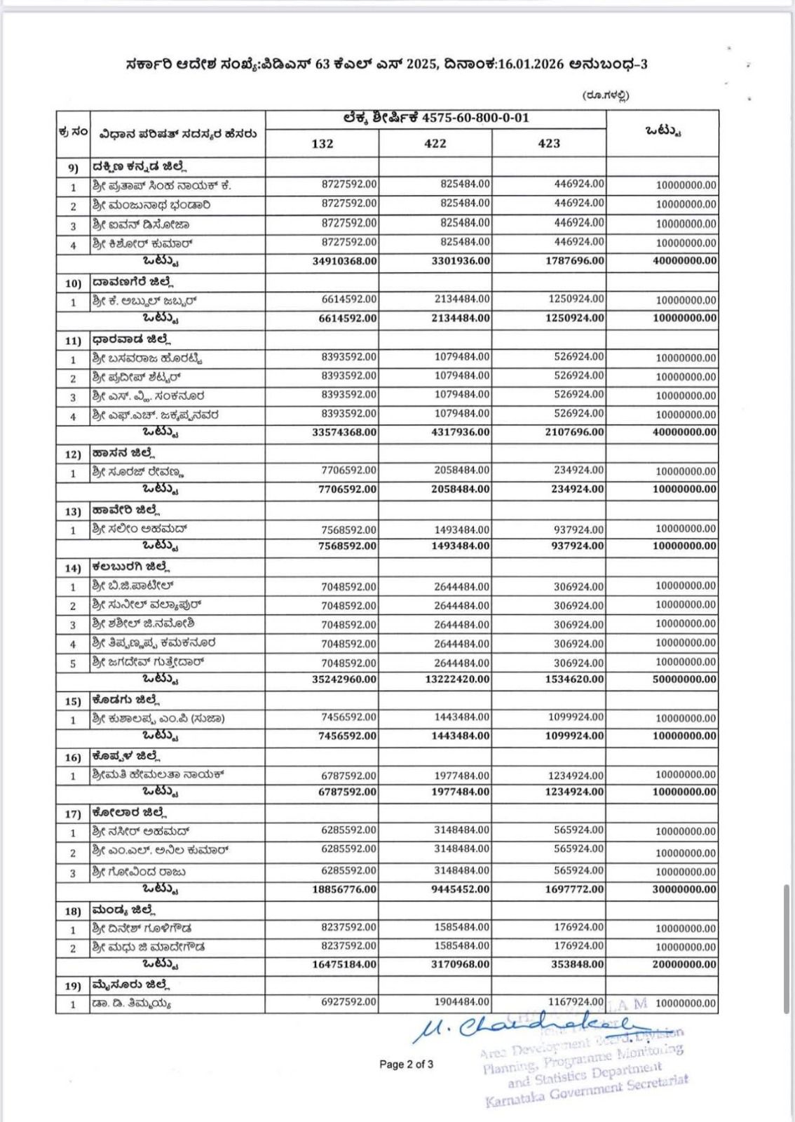 ಈ ಕುರಿತಂತೆ ಯೋಜನೆ, ಕಾರ್ಯಕ್ರಮ ಸಂಯೋಜನೆ ಮತ್ತು ಸಾಂಖ್ಯಿಕ ಇಲಾಖೆಯ ಜಂಟಿ ನಿರ್ದೇಶಕರು ಹಾಗೂ ಪದನಿಮಿತ್ತ ಸರ್ಕಾರದ ಉಪ ಕಾರ್ಯದರ್ಶಿಯವು ನಡವಳಿಯನ್ನು ಹೊರಡಿಸಿದ್ದಾರೆ. ಅದರಲ್ಲಿ ಯೋಜನೆ, ಕಾರ್ಯಕ್ರಮ ಸಂಯೋಜನೆ ಮತ್ತು ಸಾಂಖ್ಯಿಕ ಇಲಾಖೆಯ ಅಧೀನದಲ್ಲಿ ಬರುವ ವಿವಿಧ ಇಲಾಖೆ/ಸಂಸ್ಥೆ/ಮಂಡಳಿ/ಪ್ರಾಧಿಕಾರಗಳಿಗೆ ಸಂಬಂಧಿಸಿದಂತೆ ಯೋಜನಾ ಕಾರ್ಯಕ್ರಮಗಳನ್ನು 2025-26ನೇ ಸಾಲಿಗೆ ಮುಂದುವರೆಸಲಾಗಿದೆ ಹಾಗೂ ಪುಸಕ್ತ ಸಾಲಿನ ಆಯವ್ಯಯದಲ್ಲಿ ಕರ್ನಾಟಕ ಶಾಸಕರ ಸ್ಥಳೀಯ ಪುದೇಶಾಭಿವೃದ್ಧಿ ಯೋಜನೆಯಡಿ ಒಟ್ಟು ರೂ.60225.17 ಲಕ್ಷಗಳನ್ನು ಈ ಕೆಳಕಂಡಂತೆ ಒದಗಿಸಲಾಗಿದೆ ಎಂದಿದ್ದಾರೆ.