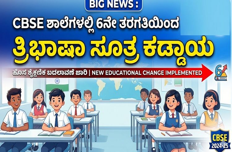 ನವದೆಹಲಿ : ಕೇಂದ್ರ ಪ್ರೌಢ ಶಿಕ್ಷಣ ಮಂಡಳಿಯು (CBSE) ರಾಷ್ಟ್ರೀಯ ಶಿಕ್ಷಣ ನೀತಿಯ (NEP) ಅನ್ವಯ ಮಹತ್ವದ ಬದಲಾವಣೆಗಳನ್ನು ಘೋಷಿಸಿದ್ದು, 2026-27ನೇ ಶೈಕ್ಷಣಿಕ ವರ್ಷದಿಂದ 6ನೇ ತರಗತಿಯಿಂದಲೇ ತ್ರಿಭಾಷಾ ಸೂತ್ರವನ್ನು ಕಡ್ಡಾಯವಾಗಿ ಜಾರಿಗೆ ತರಲು ಮುಂದಾಗಿದೆ.