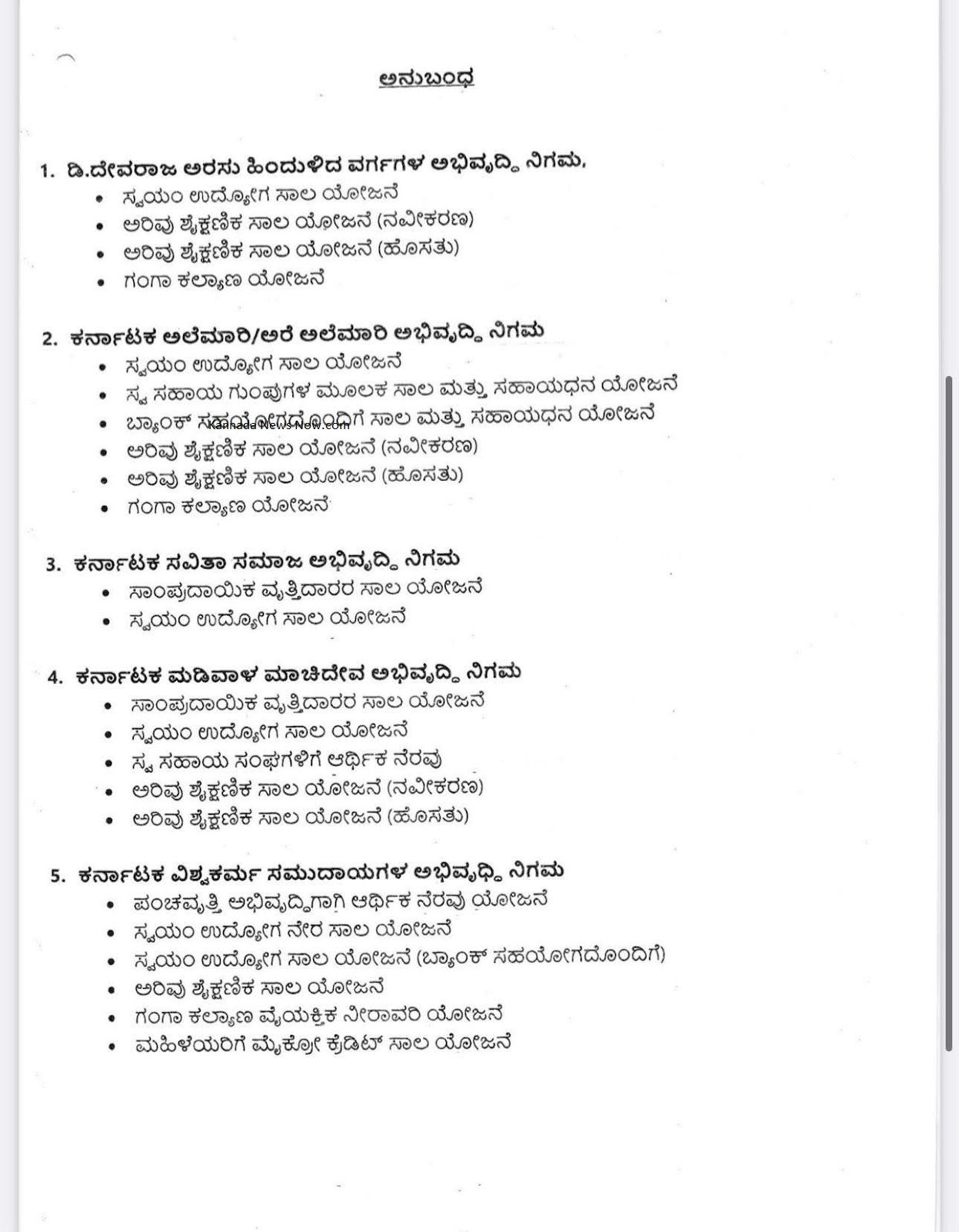 1. ಡಿ.ದೇವರಾಜ ಅರಸು ಹಿಂದುಳಿದ ವರ್ಗಗಳ ಅಭಿವೃದ್ಧಿ ನಿಗಮ,