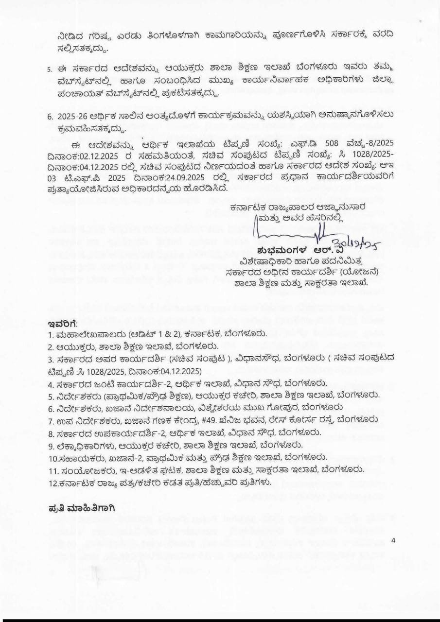 ನಿಯಮಗಳ ಪ್ರಕಾರ ಟೆಂಡರ್ ಆಹ್ವಾನಿಸಲು ಶಾಲಾ ಶಿಕ್ಷಣ ಇಲಾಖೆಯ ಆಯುಕ್ತರಿಗೆ ಅಧಿಕಾರ ನೀಡಲಾಗಿದೆ.
