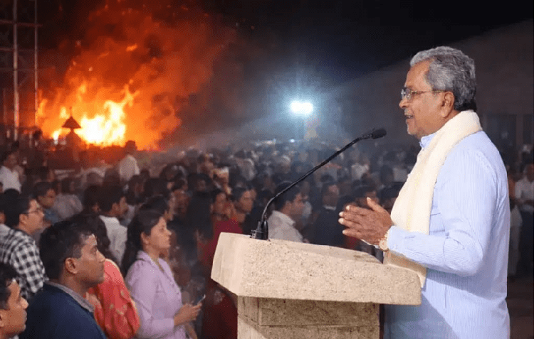 ಸಿಎಂ ಸಿದ್ದರಾಮಯ್ಯ ಅವರಿದ್ದ ಮುಖ್ಯ ವೇದಿಕೆಯ ಎದುರೇ ಬೆಂಕಿ ಹೊತ್ತಿಕೊಂಡಿದೆ. ಸಿಎಂ ಸಿದ್ದರಾಮಯ್ಯ ಪೂಜೆ ಸಲ್ಲಿಸುವ ವೇಳೆಯೇ ಕ್ ಅಗ್ನಿ ಅವಘಡ ಸಂಭವಿಸಿದೆ ಎನ್ನಲಾಗಿದೆ. ಸ್ಥಳದಲ್ಲೇ ಇದ್ದ ಅಗ್ನಿಶಾಮಕ ದಳ ಸಿಬ್ಬಂದಿ ಬೆಂಕಿ ನಂದಿಸಿದ್ದು, ಉತ್ಸವದಲ್ಲಿ ಭಾಗಿಯಾಗಲು ಸಿಎಂ ಸಿದ್ದರಾಮಯ್ಯ ಬಂದ ಸಮಯದಲ್ಲಿ ಪಟಾಕಿ ಸಿಡಿಸಲಾಗಿದೆ.