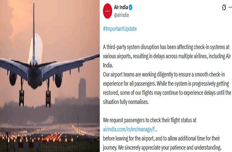 A third-party system disruption has been affecting check-in systems at various airports, resulting in delays across multiple airlines, including Air India.