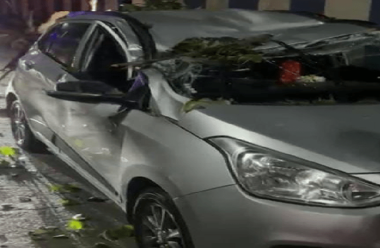 ನಿನ್ನೆ ರಾತ್ರಿ 11 ಗಂಟೆಯ ಸುಮಾರಿಗೆ ಈ ಅವಘಡ ಸಂಭವಿಸಿದ್ದು, ಚಲಿಸುತ್ತಿದ್ದ ಕಾರಿನ ಮೇಲೆ ಬೃಹತ್ ಮರದ ಕೊಂಬೆಯೊಂದು ಬಿದ್ದಿದೆ. ಕಾರು ಸಂಪೂರ್ಣ ಜಖಂ ಆಗಿದ್ದು, ಚಾಲಕ ಕಾರ್ತಿಕ್ಗೆ ಸಣ್ಣಪುಟ್ಟ ಗಾಯಗಳಾಗಿವೆ. ಮಗುವಿನ ಸಮೇತ ಆರ್ ಟಿ ನಗರದ ಕಡೆಗೆ ನಾಲ್ವರು ಕಾರಿನಲ್ಲಿ ತೆರಳುತ್ತಿದ್ದರು.